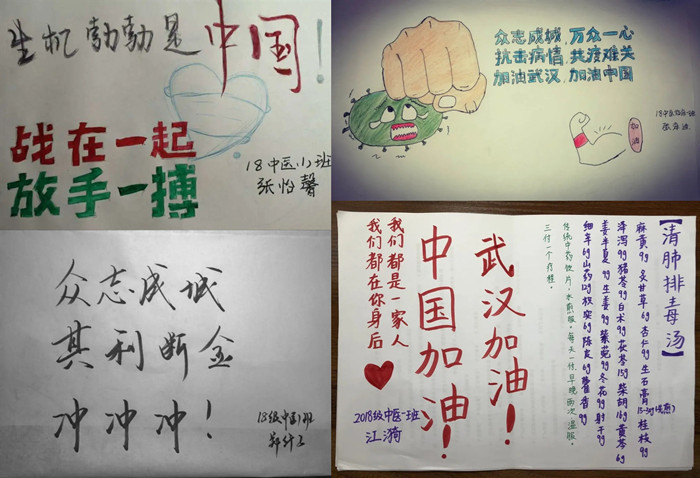 新冠肺炎疫情期间,中医学院认真贯彻落实疫情防控工作,多措并举,加强宣教。为积极引导学生正确面对疫情,肩负时代赋予的使命与责任,向抗疫一线医务工作者传递爱心和敬意,中医学院18级中医一班、18级中医二班在其辅导员徐慧的带领下,开展了“疫情就是命令,防控就是责任”、“抗击疫情,我们在行动”系列线上主题活动。