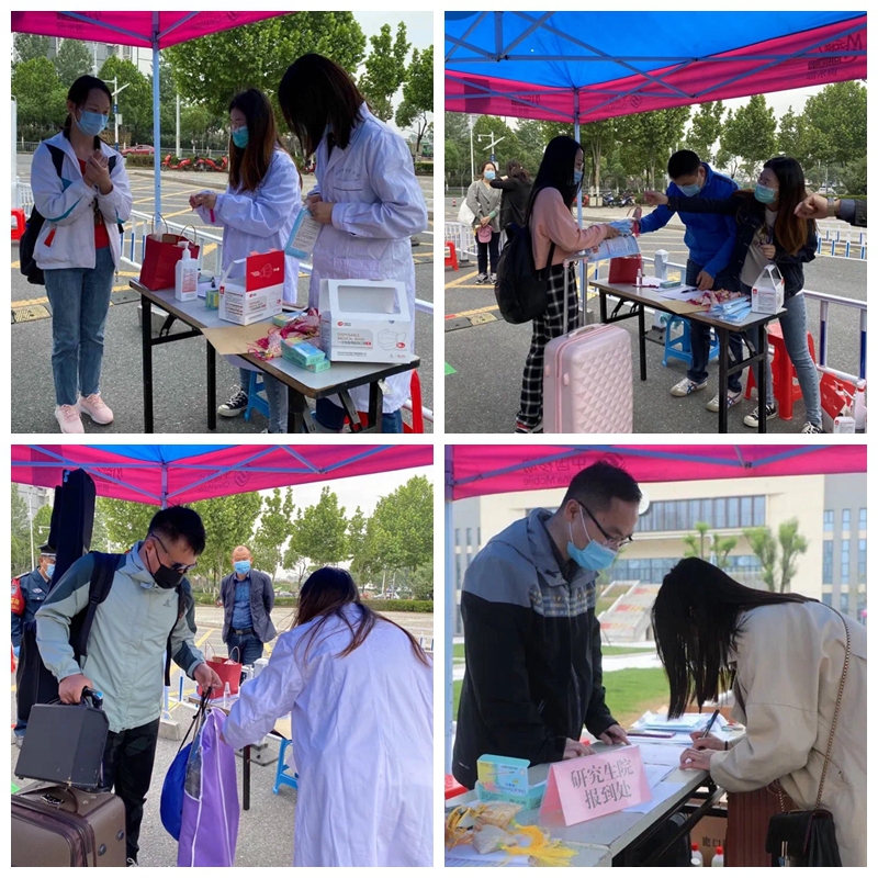 菁菁五月,绿满安中。按照“错峰错时、分批分流”的开学要求,5月9日,药学院迎来了2020年春季学期首批返校学生。学校党委常委,药学院党委书记吴达武、学生处副处长金晓琴,药学院副院长韩岚分别带队深入学生返校现场检查指导工作,确保各项疫情防控措施扎实有效,并向返校复学的学生表示欢迎,细心询问其生活物资准备和身体健康情况。