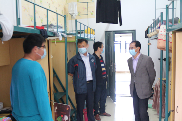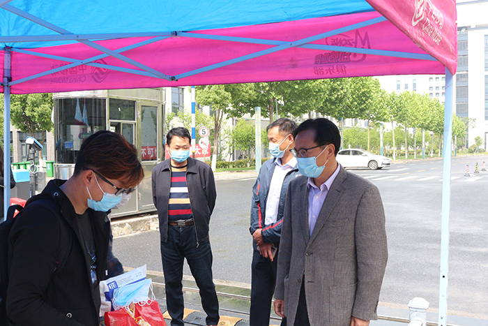 5月9日,为保证医药信息工程学院首批返校学子顺利有序入校,学院党委书记吴成海,党委副书记詹中华,副院长阚峻岭来到校门口和宿舍进行检查指导,并对他们表示欢迎。