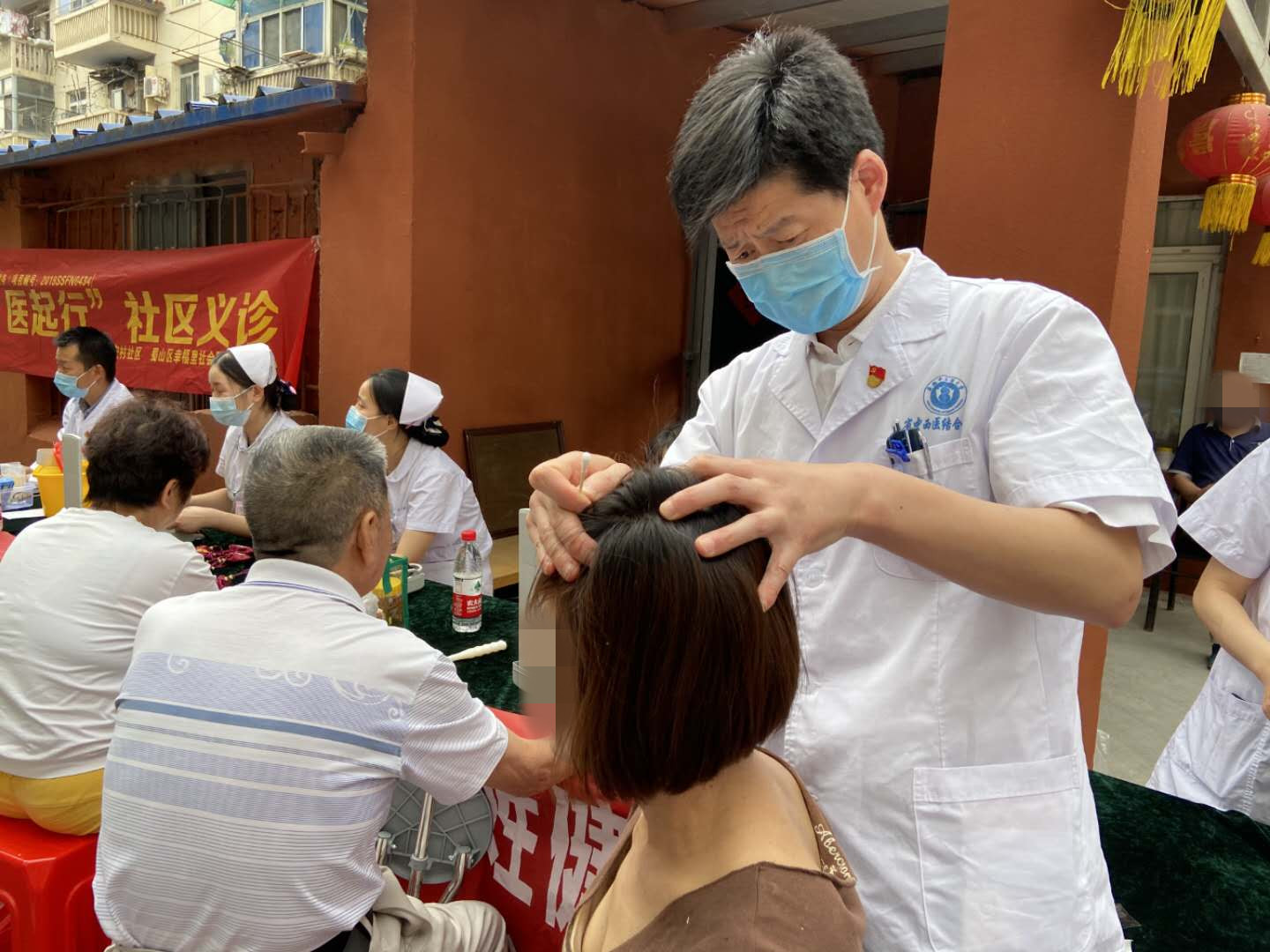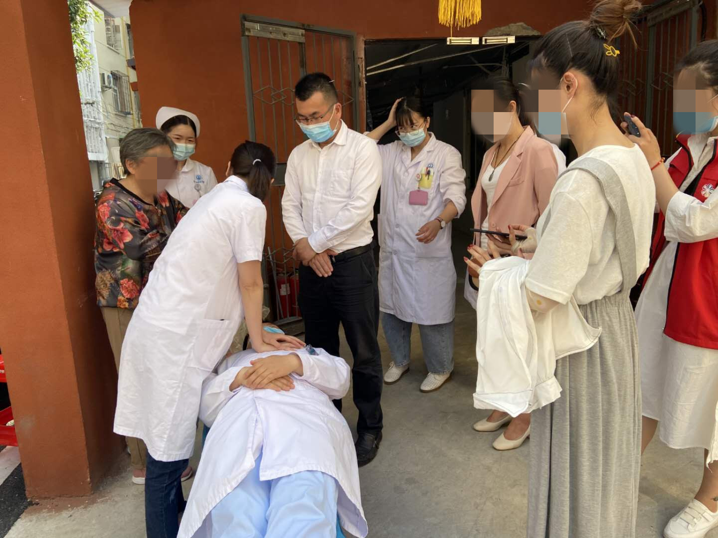 测血压,咨询问诊,望闻问切,针灸治疗,义诊活动现场气氛热烈,社区的居民对中医药疗效赞不绝口。史玉虎运用龙砂六气开阖针法进行针灸降压、针灸治疗耳鸣耳聋、针灸治疗颈肩腰腿疼等疾患,针到痛消,针到病减,治疗效果得到了群众一致好评。韦彪等同志对行动不便患者还提供了上门服务,体现了医者大爱。义诊现场同时宣传了一些疾病预防知识,指导“七步洗手法”,介绍急救心脉复苏知识,并示范了“心肺复苏术”,提高了社区居民的急救意识和急救能力。孙文美奶奶说:“这个活动好呀,给了我们这些老年人方便,我们年纪大了,出行不便,社区跟医院能服务到家门口是真的做好事,真的非常感谢!”