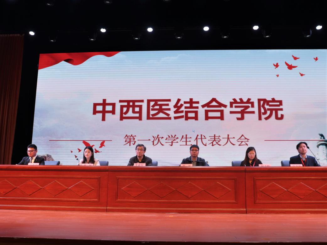 中西医结合学院院工会代表云大清寄语中西医结合学院学生不负韶华,成长成才。王锐同学宣读兄弟学院学生会贺词,贺词中体现出兄弟院部对中西医结合学院团学工作的热切关注。
