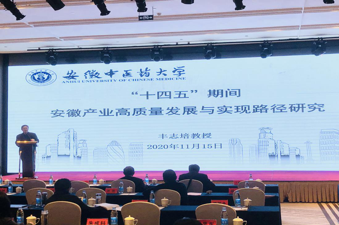 分论坛安徽经管学院院长论坛上,合肥工业大学、安徽大学、安徽中医药大学等11位院长先后进行发言交流。丰志培,以《“十四五”期间安徽产业高质量发展与实现路径》为题,分别从安徽产业发展现状,发展趋势,面临维问题及政策建议四个方面探讨了“十四五”期间安徽产业如何实现高质量发展,发言内容得到在场专家学者的高度评价。