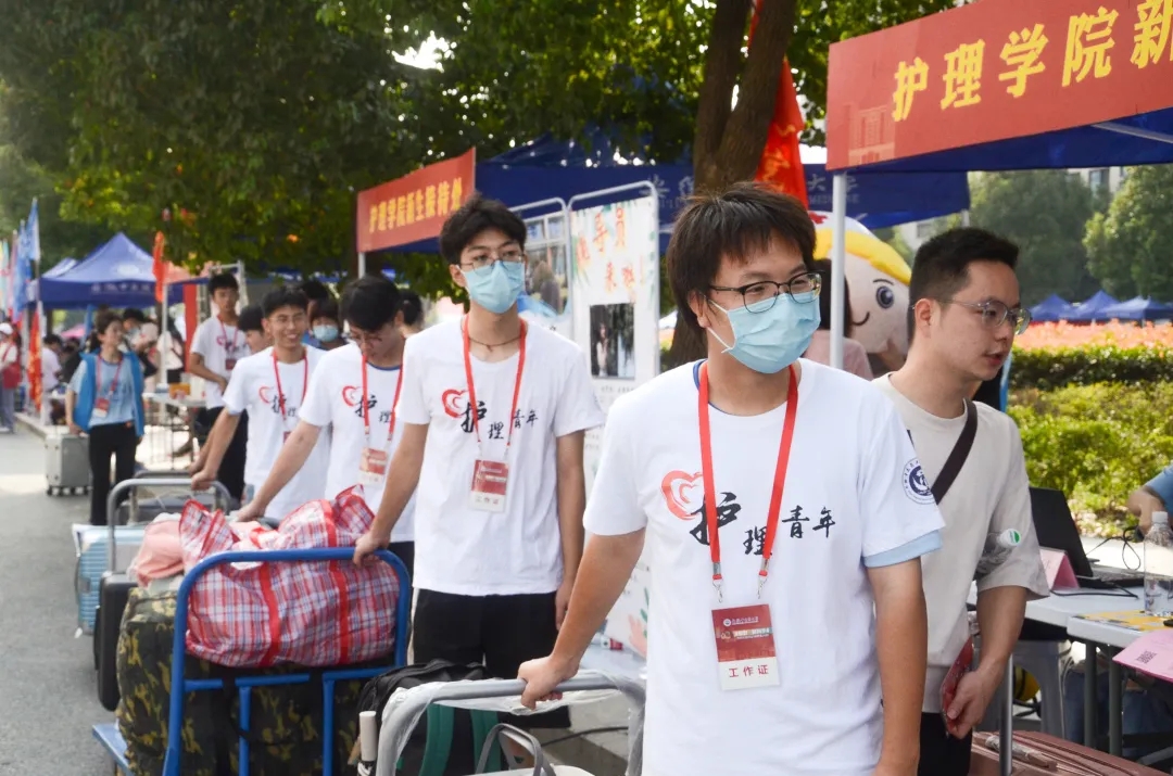 护理学院迎新工作中乐于奉献的青年志愿者们,向新生展现了护理学院积极向上的精神风貌。来自全国各地的新生对大学生活都充满着无限憧憬,祝愿2021级新生们能够在大学生活中披荆斩棘,在大有可为的新时代大有作为,唱响属于自己的青春之歌。(柳明宏/文字 新媒体工作室/图片 吴成长/审核)