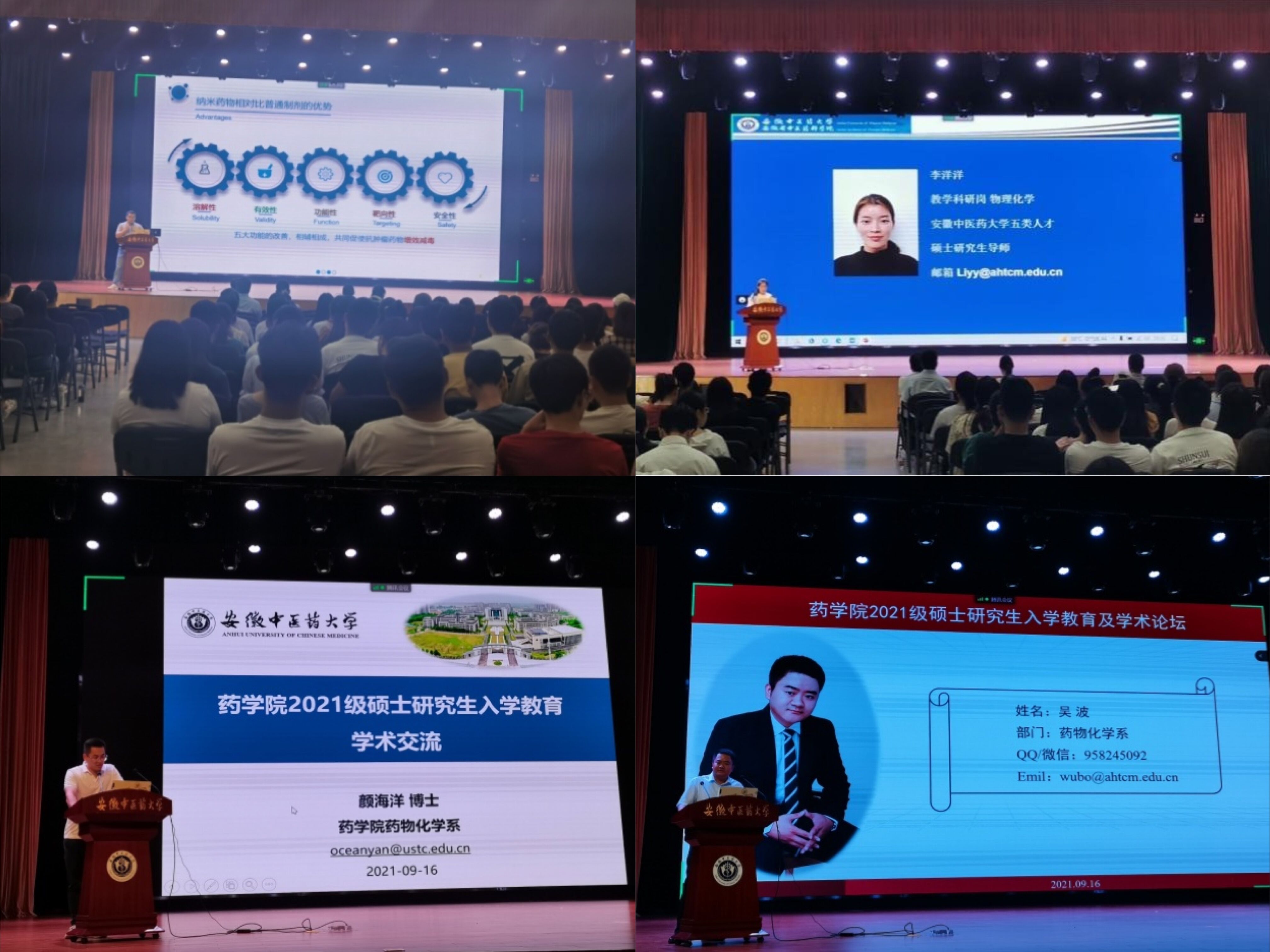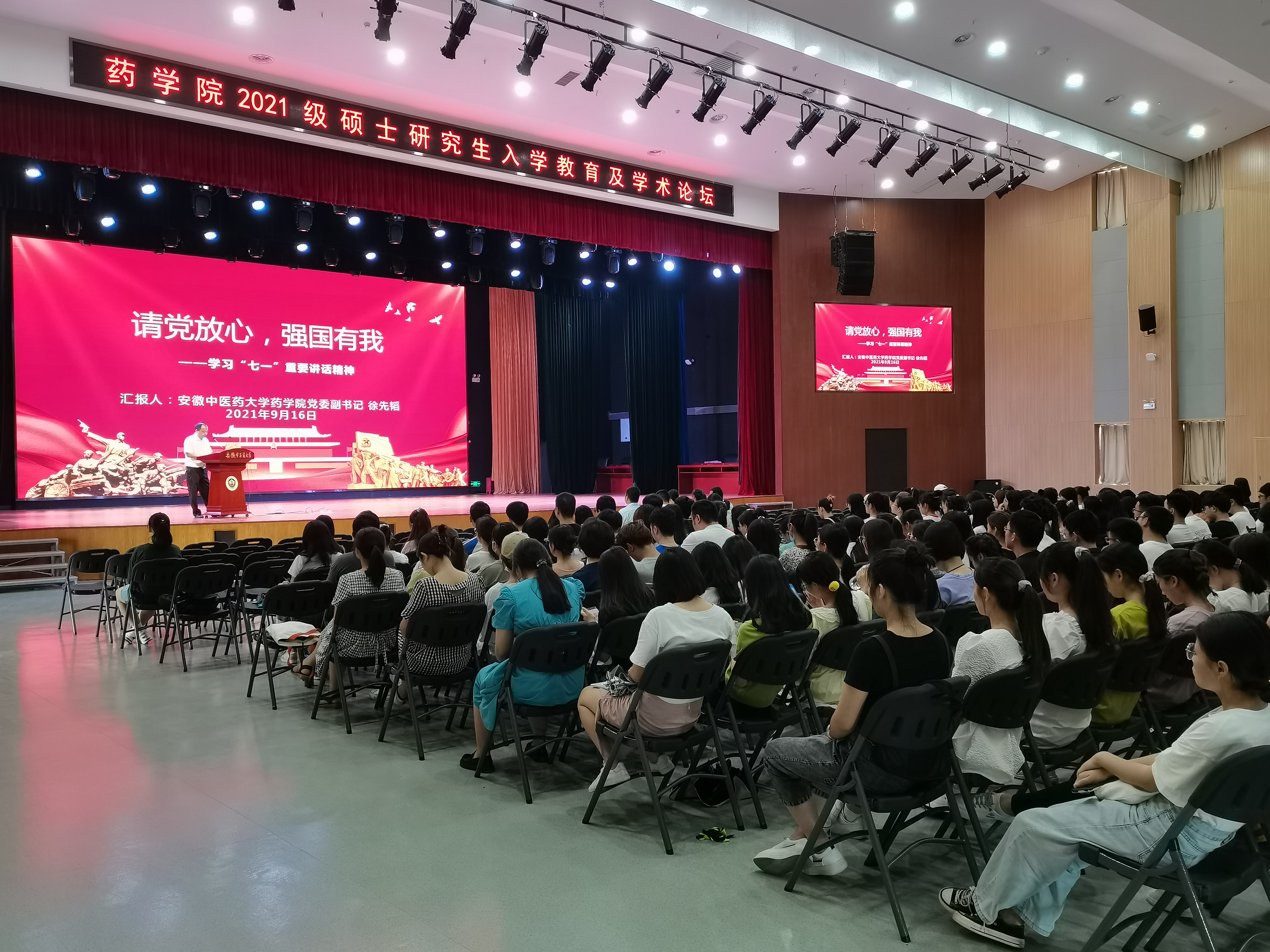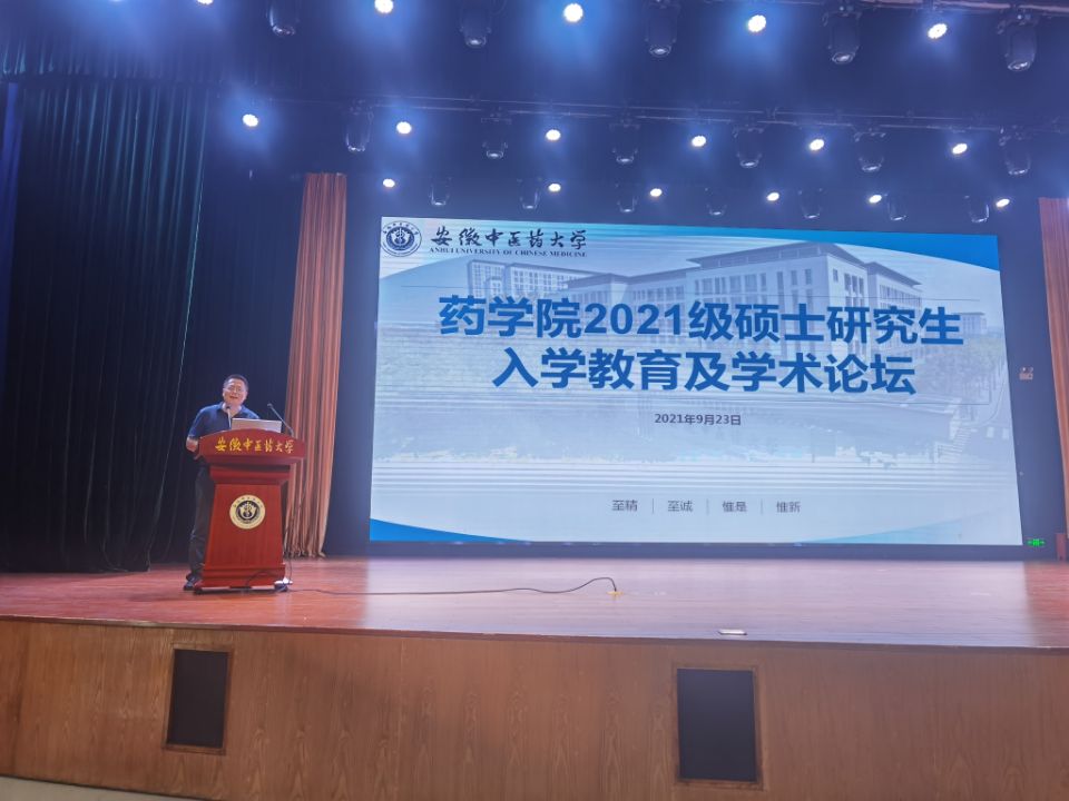 为使研究生尽快熟悉校园环境、适应研究生阶段学习和科研工作,药学院分别于9月16日、23日在大学生活动中心举行2021级硕士研究生入学教育及学术论坛。近三年引进高层次人才、研究生辅导员及2021级全体研究生参会,会议分两场举行,分别由药学院党委副书记徐先韬、副院长尹登科主持。