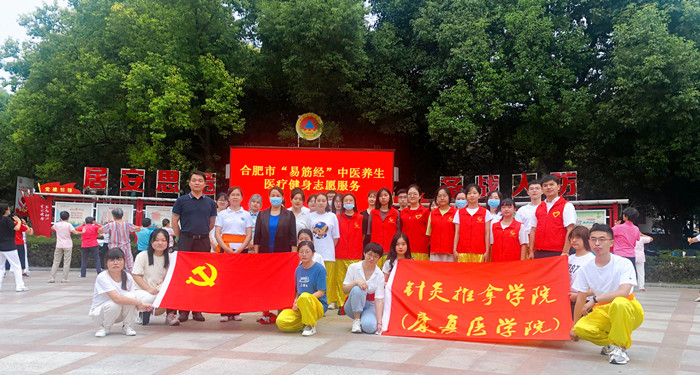 9月14日,我校针灸推拿学院中医养生医疗健身师生志愿服务队,在合肥市西园街道竹荫里社区志愿者广场,举行以“健康新生活 志愿添光彩”为主题的志愿服务,旨在发扬中医文化,传播传统功法,此项活动由该院分团委组织。