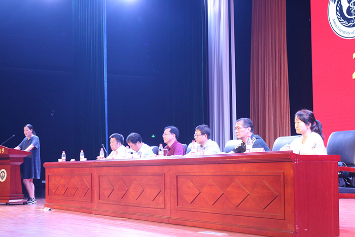 教师代表束建华从大学生大学学习特别是专业学习的特点,告诫新生要努力适应,积极投入,勉励大家实现梦想需要刻苦学习、脚踏实地。