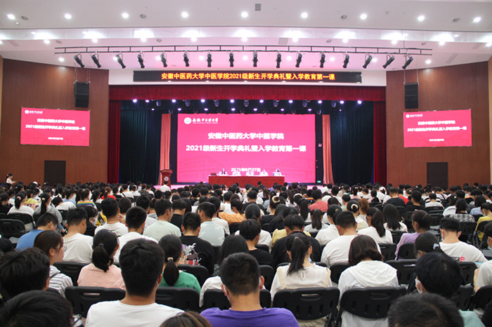 9月27日上午,中医学院2021级新生开学典礼暨入学教育第一课在大学生活动中心举行。学院党委书记杜明、院长方向明和2021级全体新生参加典礼。