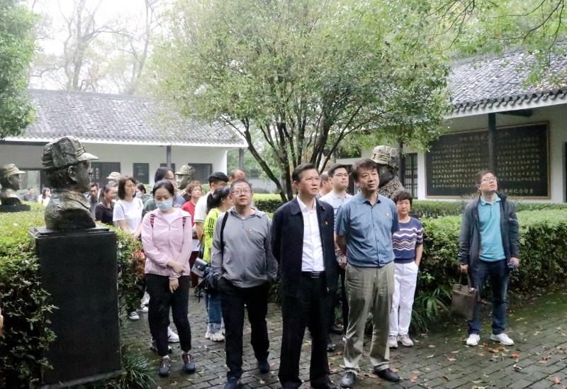 首先,党员们冒着蒙蒙细雨,怀着崇敬的心情,集体参观了新四军江北指挥部旧址,瞻仰了新四军英雄雕像,参观了新四军江北指挥部纪念馆,观看了纪念馆陈列的各种史料、图片、实物,认真聆听了革命烈士的英勇事迹。