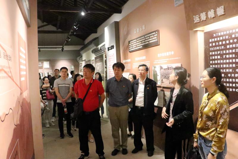 新四军江北指挥部纪念馆主要分为揭露日军侵华暴行、新四军挥师东进、四支队东进抗日、江北游击纵队坚持皖中、新四军江北指挥部、第五六支队在皖东、皖南事变、二师的诞生等八大模块。馆内陈列了200多幅珍贵的历史照片,图表和文献资料,系统的介绍了新四军江北指挥部的组成,发展,壮大的过程。通过陈列大量的图文资料,大小型场景,雕塑等展品,再现了在中国共产党领导下,指挥部将士不畏艰难困苦,不怕流血牺牲的伟大革命精神。详细的介绍、真实的图片、富有历史气息的实物展品加上讲解员深情的讲解,将大家带回那个烽烟四起、硝烟弥漫、炮声隆隆的年代。通过参观学习,党员同志们更深入了解了新四军江北指挥部成立发展过程,重温了了解到江北指挥部将士在中国共产党领导下,不畏艰难困苦,不怕流血牺牲、敢于争取胜利的伟大革命精神。