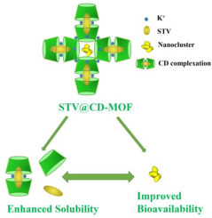 近日,我校药学院桂双英教授团队与《药学学报》英文刊编委、中国科学院上海药物研究所张继稳课题组合作,在《药学学报》英文刊(Acta Pharmaceutica Sinica B)2021年第9期上发表论文,报道CD-MOF用于提高活性天然化合物异甜菊醇(STV)的溶解度和生物利用度的研究。证实了药物在CD-MOF空腔中形成纳米团簇,能显著提高STV的生物利用度。
