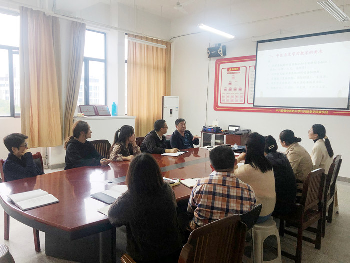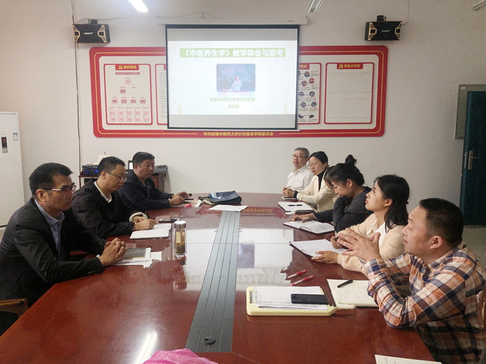 10月13日下午,针灸推拿学院康复养生系在该院党员活动室开展了《中医养生学》课程集体备课活动,该院党委书记蒋宏杰、系主任陈朝晖、该系全体教师参与,备课活动由系部教师吴劲松主讲,张雷主持。