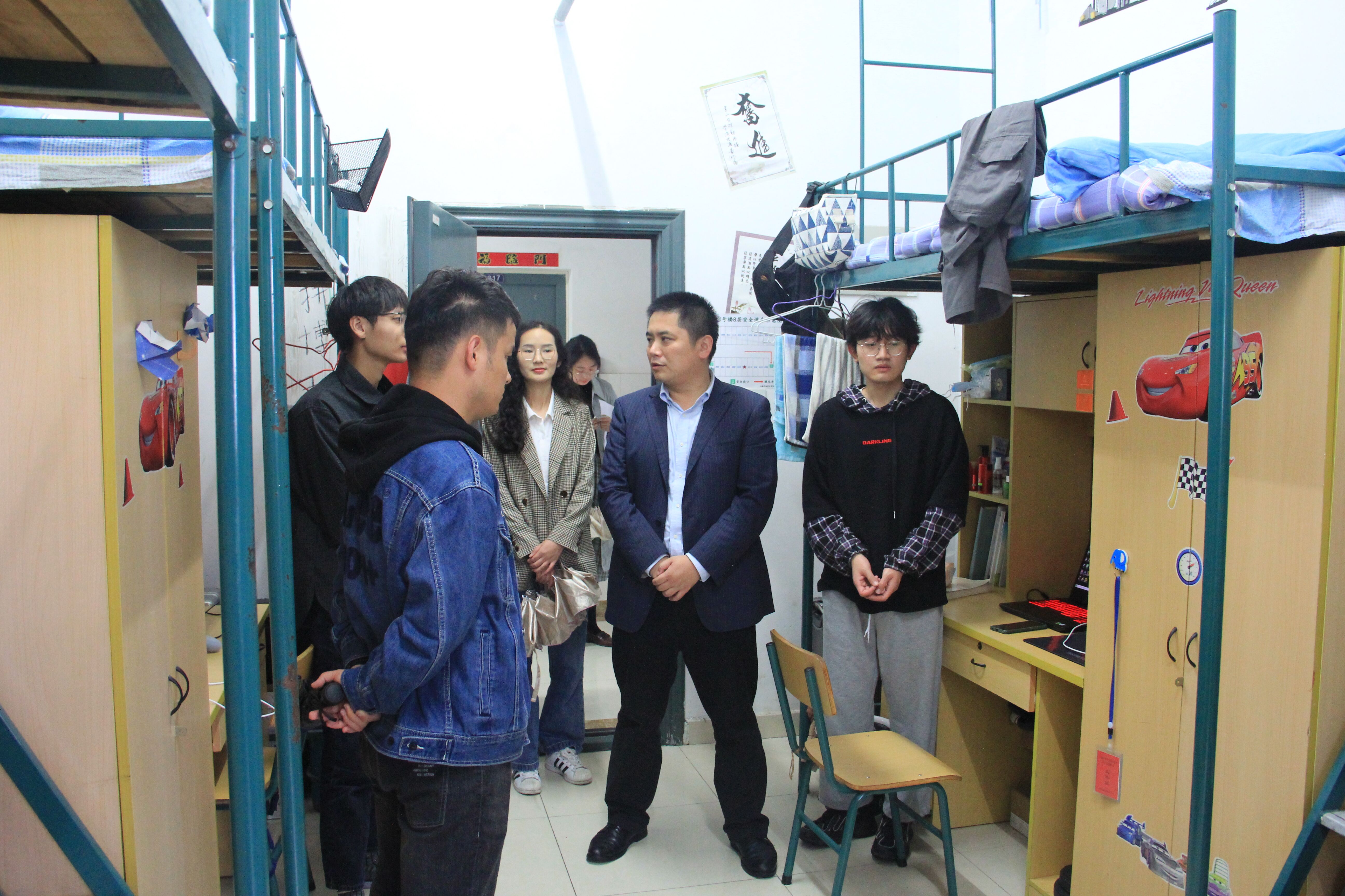 桂大鹏带领辅导员重点查看了学生宿舍的卫生、水电安全、违规电器使用、宿舍文明等情况,现场要求各班级辅导员加强安全教育,杜绝安全隐患,以保障同学们生活学习、安全与校园稳定。