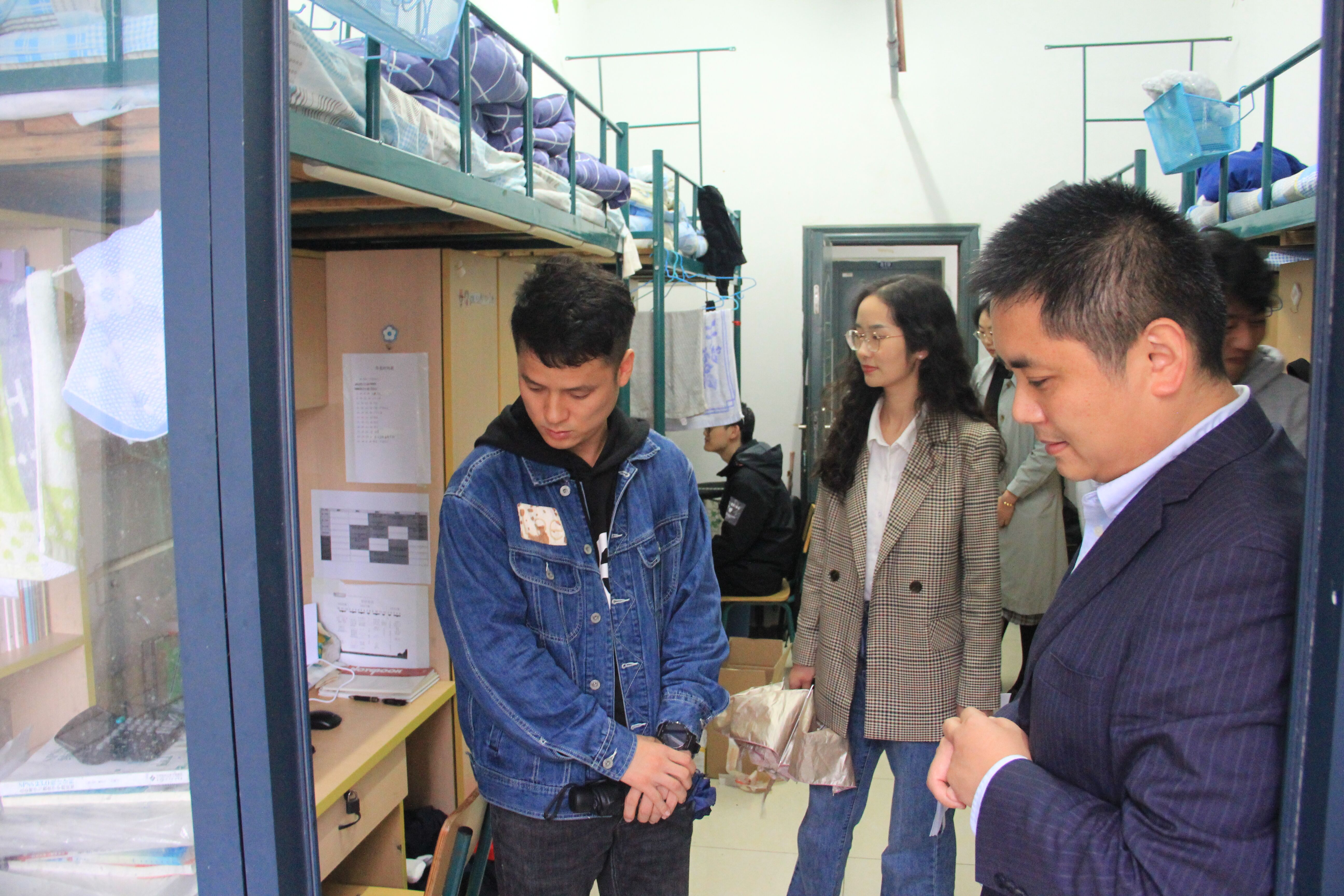 为了深入了解学生的思想动态及学习、生活情况,增强学生的宿舍安全防范意识,10月15日中午,由人文与国际教育交流学院党总支副书记桂大鹏带队,学院全体辅导员一同检查走访学生宿舍。