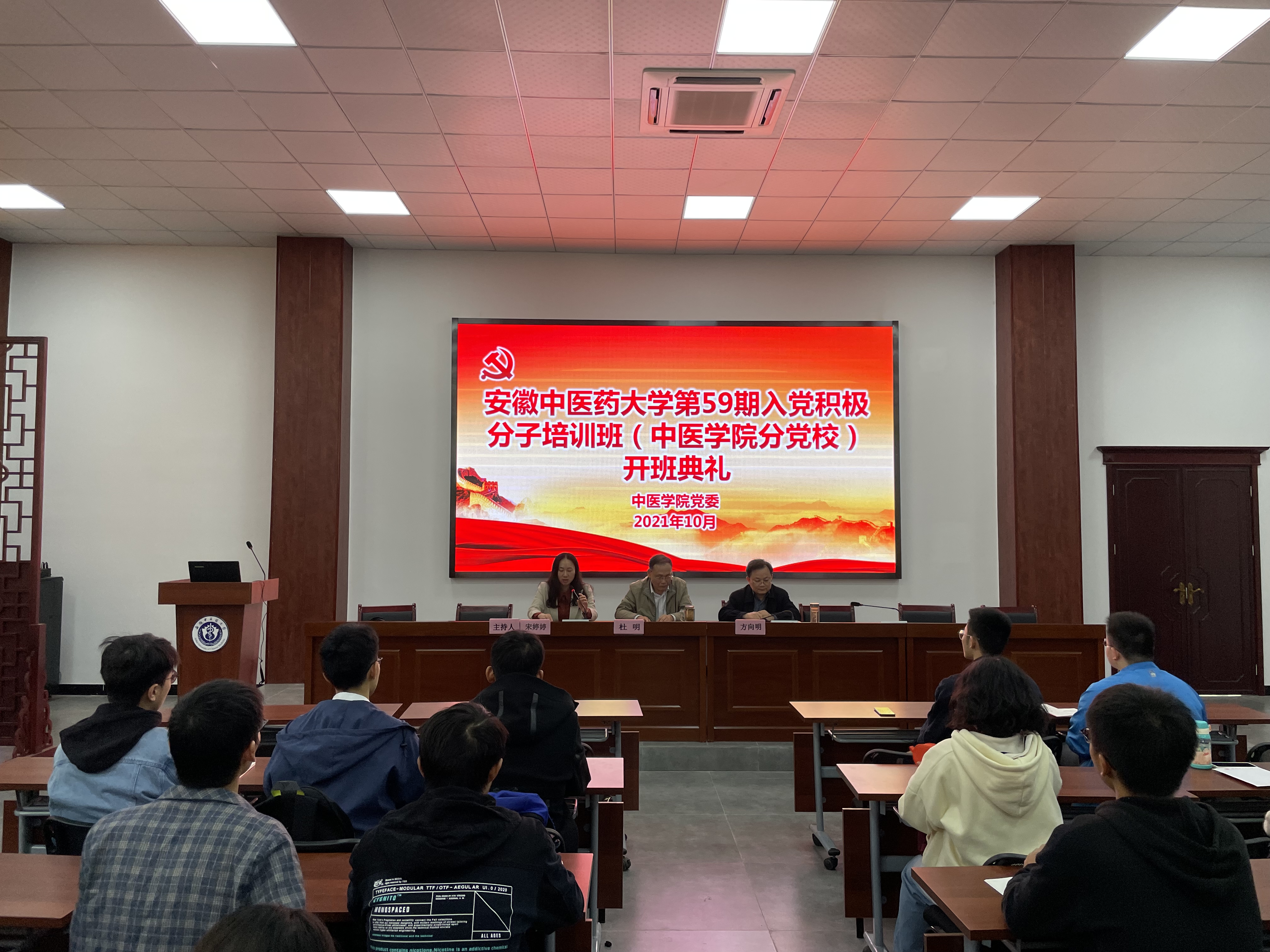 10月18日中午,中医学院党委在宅仁堂报告厅举行第59期入党积极分子培训班(中医学院分党校)开班典礼,学院党委书记杜明、学院院长方向明出席典礼,中医学院2020级学生辅导员列席。典礼由学院党委副书记宋婷婷主持。