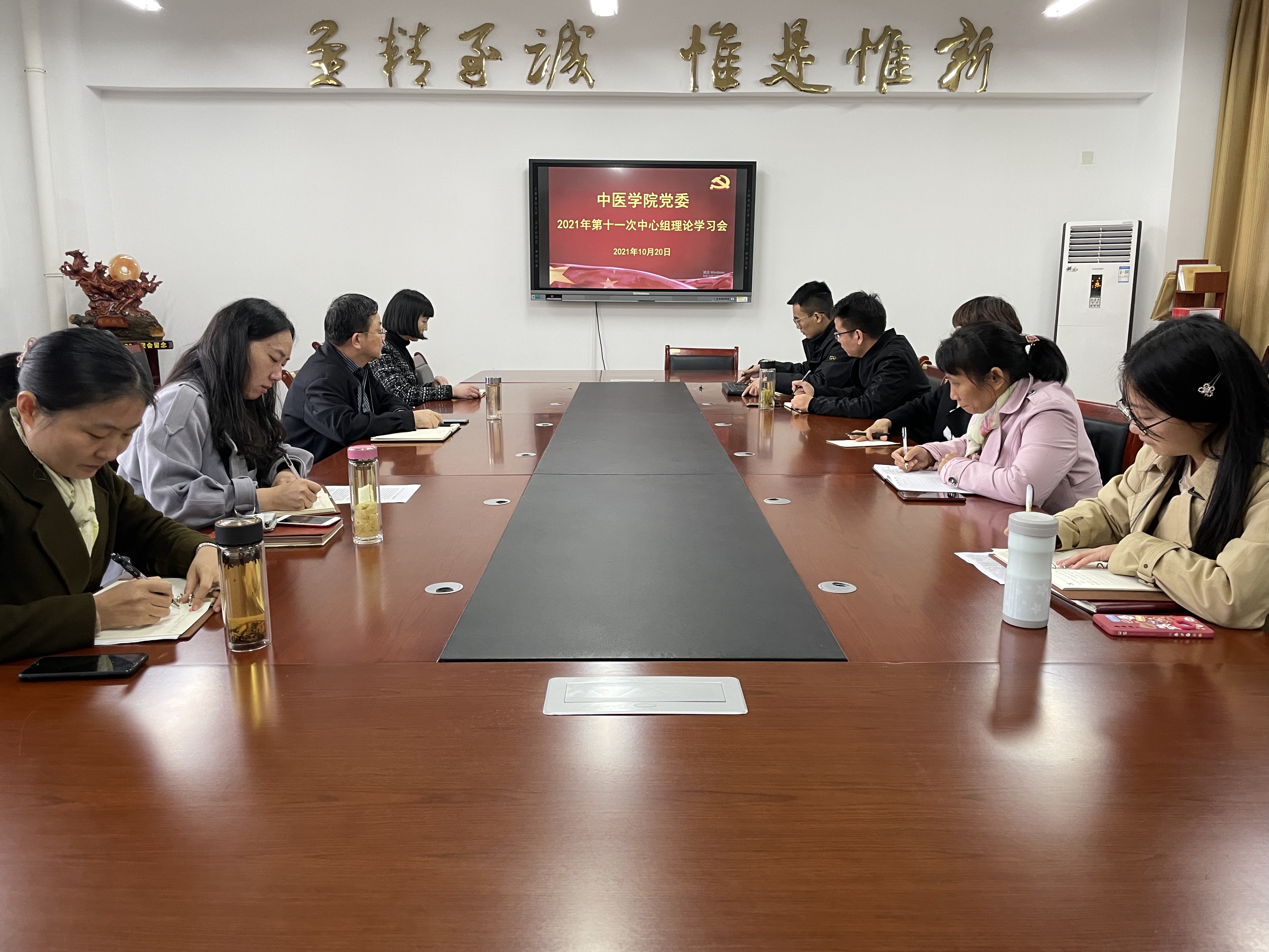 10月20日下午,中医学院党委召开2021年第十一次中心组理论学习会,学院党委中心组成员、各党支部书记参会,会议由学院党委副书记宋婷婷主持。