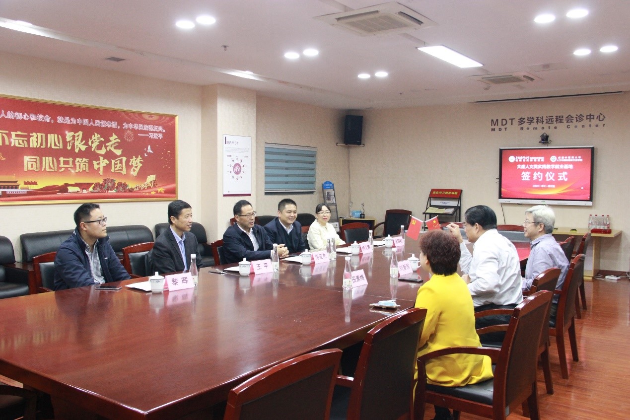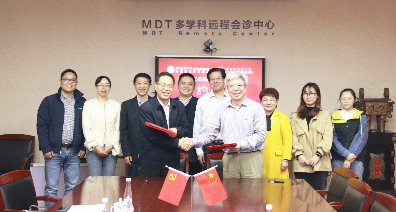 韩仕龙首先对周亚东一行的到来表示热烈欢迎。他表示,安徽中医药大学办学历史悠久,底蕴深厚,人文与国际教育交流学院应用心理学专业是具有中医药特色的专业,为社会培养了很多优秀心理学毕业生。济民肿瘤医院目前是安徽大学、合肥学院、合肥师范学院的实践教学基地,拥有雄厚的带教师资,希望可以通过此次与安徽中医药大学人文与国际教育交流学院签订实践教学基地的契机,加强合作与交流,促进双方共同发展。