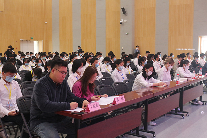 叶兰兰代表校团委向大会的胜利召开表示热烈祝贺,向医药信息工程学院广大青年致以诚挚的问候和良好的祝愿,并充分肯定了近年来学院团学组织在各方面取得的显著成绩,对学院分团委和学生会委员会提出三点希望,一要筑牢信仰之魂,增强对团员青年思想引领的针对性和有效性;二要践行为民之心,切实为广大学生成长成才服务,全心全意为同学服务是学校各级团组织和学生会全部工作的出发点和落脚点;三要凝聚奋斗之力,提升团学干部队伍效能。“打铁还需自身硬”。学院团委和学生会要坚持问题导向,不断加强工作创新与自身建设,以务实肯干的优良作风破解工作难题,以敢为人先的创新勇气创造崭新业绩,以实际行动做到让学院领导放心,让学生满意!