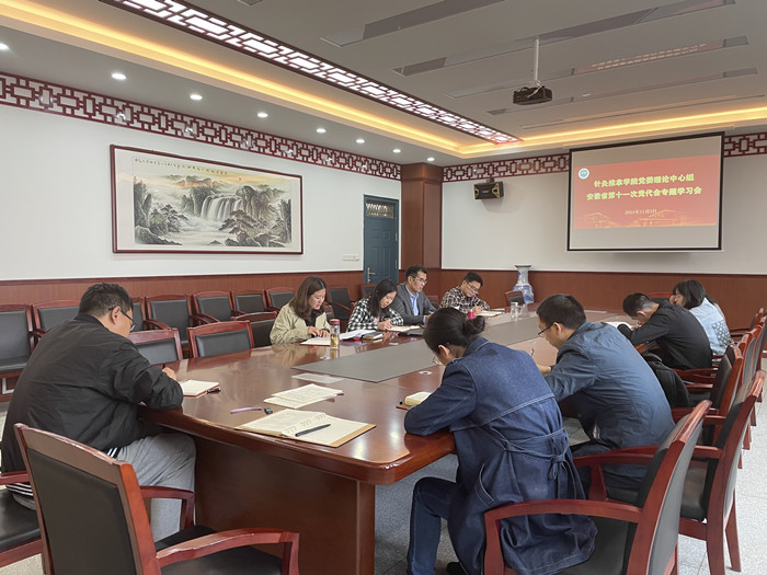 11月3日下午,针灸推拿学院召开党委理论学习中心组学习会议,专题传达学习中国共产党安徽省第十一次代表大会精神,会议由该院党委书记蒋宏杰主持,党委中心组全体成员参会。