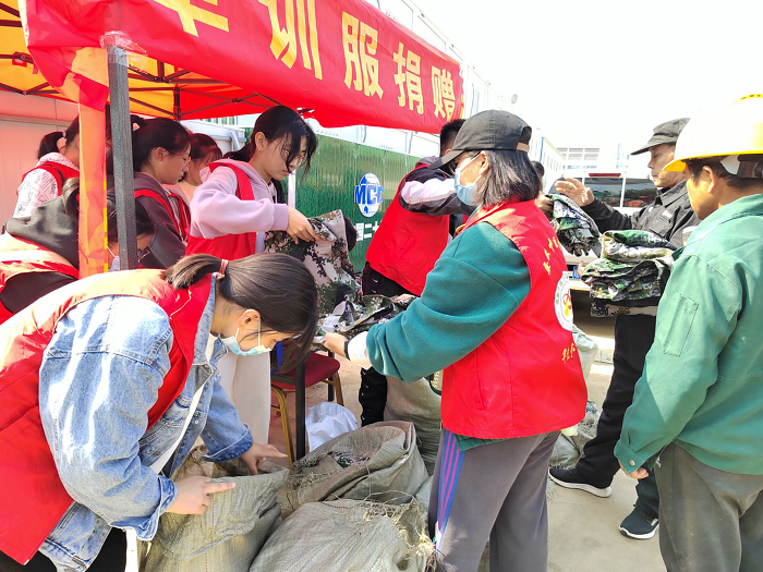 10月24日,学校大学生华佗爱心社在中国二十冶举行了面向工程建设者的军训服捐赠活动,捐赠已清洗干净叠放整齐的学生军训服装400余套。活动过程中,社团和中冶经理部人员积极合作,志愿者们表现周到、热情满满,用实际行动为在寒风中劳作的工人们带去温暖和帮助。大医精诚,青春志行,安徽中医药大学志愿服务工作一路前行。(大学生华佗爱心社/文图 叶兰兰/审核 尤志成/编发)