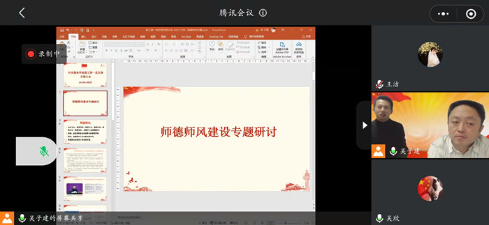 11月8日晚,针灸推拿学院教工第一党支部在腾讯会议平台开展师德师风线上学习讨论会,支部书记吴子建主持会议,支部全体党员参会。