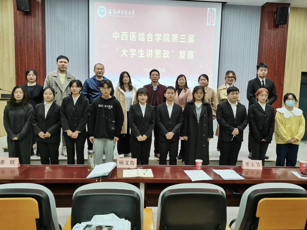 为贯彻落实全国学校思想政治理论课教师座谈会精神,根据学校思政实践教学方案,11月8日晚,中西医结合学院组织开展第三届“大学生讲思政”复赛。马克思主义学院院长董玉节、中西医结合学院党委副书记顾义俊及学院辅导员担任比赛评委。