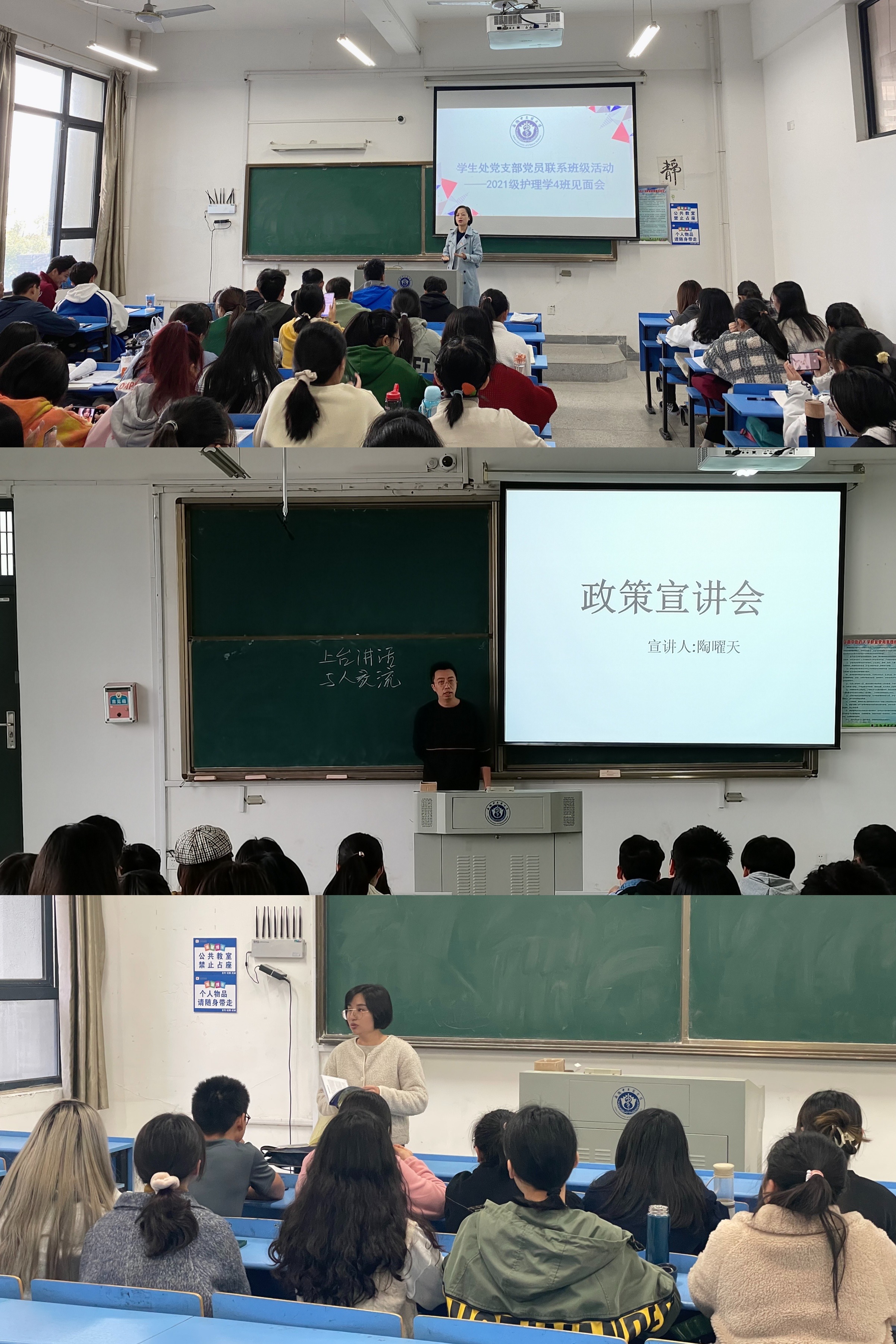 11月5日,支部党员陶曜天开展政策宣讲会,主要讲解《< 普通高等学校学生管理规定>安徽中医药大学本专科学生实施办法》《安徽中医药大学学士学位授予办法》等学校学生管理的政策文件,并与学生就学业规划、考研、就业等关心的问题进行交流解答。