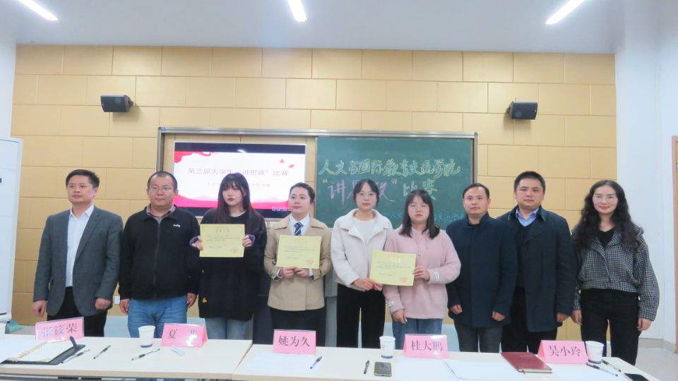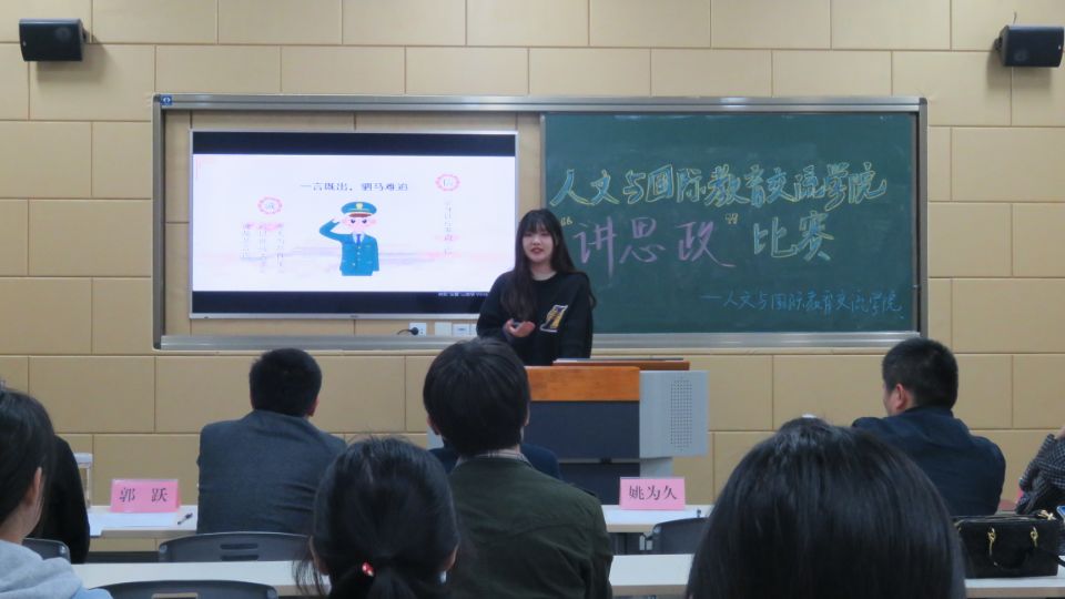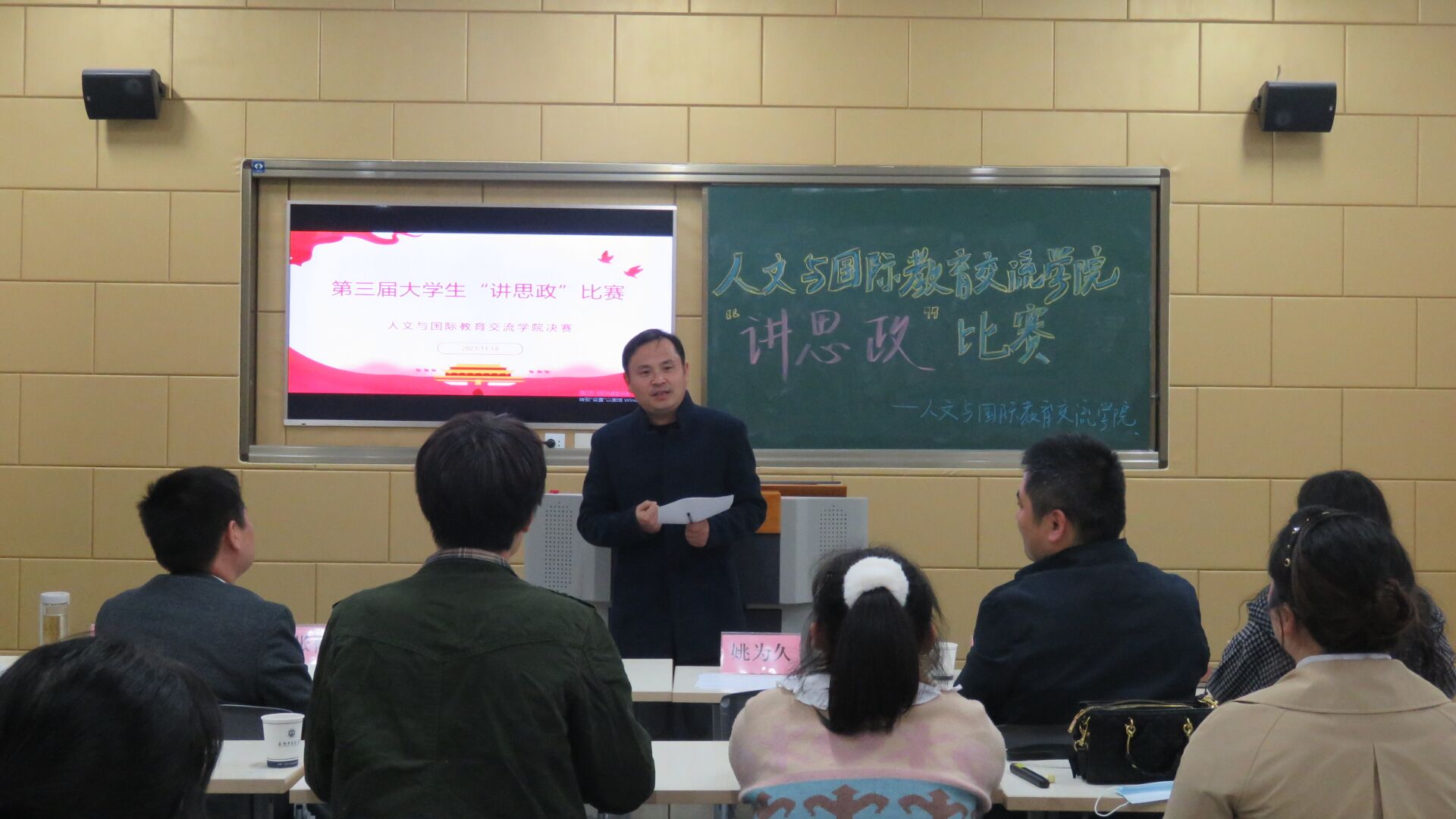 11月18日,人文与国际教育交流学院于举办以诚信为主题的第三届大学生“讲思政”院级选拔赛,安庆师范大学学生处副处长夏斐、我校马克思主义学院副院长郭跃、人文与国际教育交流学院副院长张筱荣、院党总支副书记桂大鹏等担任评委。
