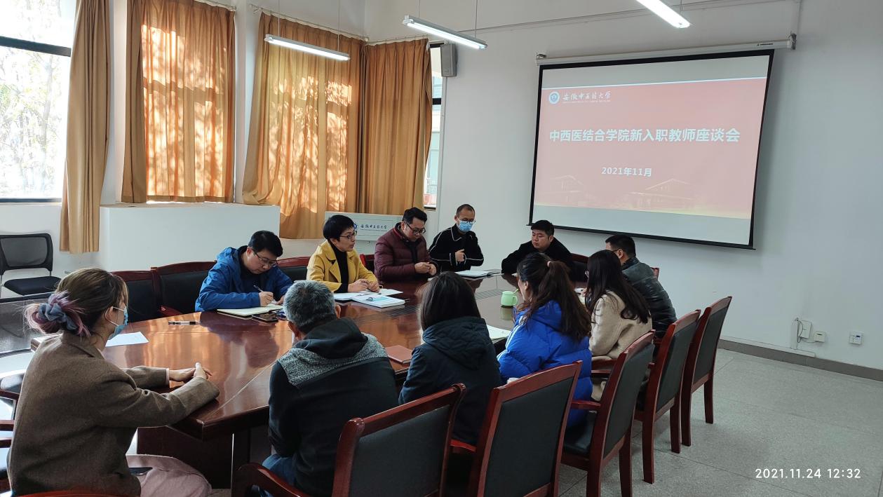 为让新教师尽快转变角色,了解学院教学和科研情况,11月24日下午,中西医结合学院召开新入职教师座谈会,学院副院长江爱娟、王靓及2021年新入职教师参会。