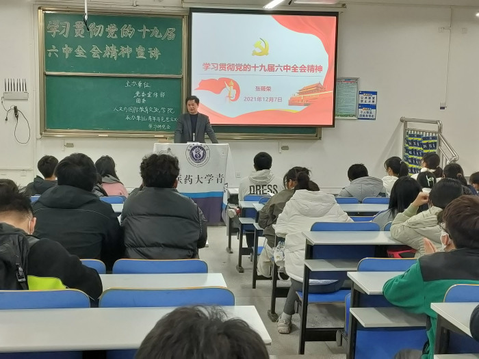 12月7日晚,由学校党委宣传部、团委、人文与国际教育交流学院联合主办,青年马克思主义者学习研究会承办的党的十九届六中全会精神宣讲报告会在少荃湖校区教学楼A313举行,学校宣讲团成员、人文与国际教育交流学院副院长张筱荣教授应邀作宣讲报告。
