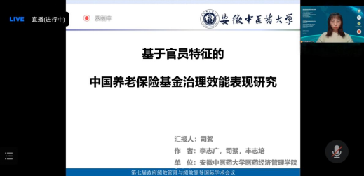 12月12日,由兰州大学中国政府绩效管理研究中心/管理学院、美国波特兰州立大学汉菲尔德政府学院、泰国孔敬大学地方政府学院共同主办的第七届政府绩效管理与绩效领导国际学术会议以“线上+线下”的形式在兰州大学召开。医药经济管理学院院长丰志培、保险学教研室教师李志广和2018级保险学司絮同学合作撰写的学术论文《基于官员特征的中国养老保险基金治理效能表现研究》入选“行为科学视角下的绩效管理”分论坛。