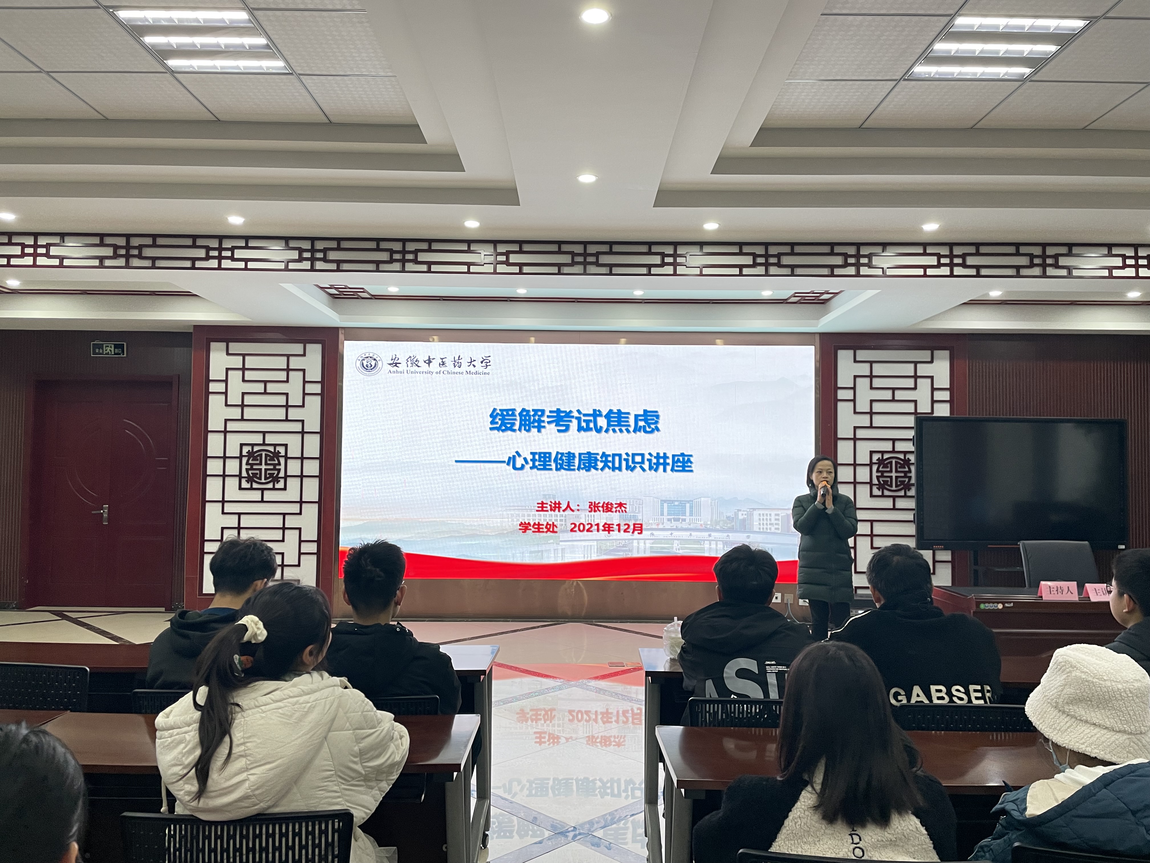 为帮助同学们有效缓解考试焦虑,积极应对即将到来的各类考试,12月14日晚,学生处邀请校心理咨询中心张俊杰作了题为“发现、认识、缓解—说一说考试焦虑的那些事”专题辅导讲座。根据疫情防控要求,讲座采取线上与线下结合的方式,部分学生代表参加现场活动,7500余名学生在线观看直播,学生处副处长金晓琴主持活动。