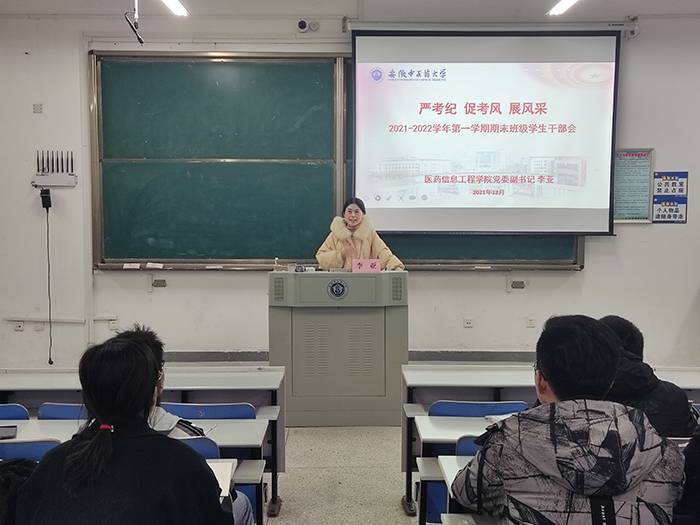为引导学生遵规守纪,树立诚信考试意识,12月17日,医药信息工程学院召开学生干部大会,学院党委副书记李亚、部分辅导员和各班级主要学生干部参加。
