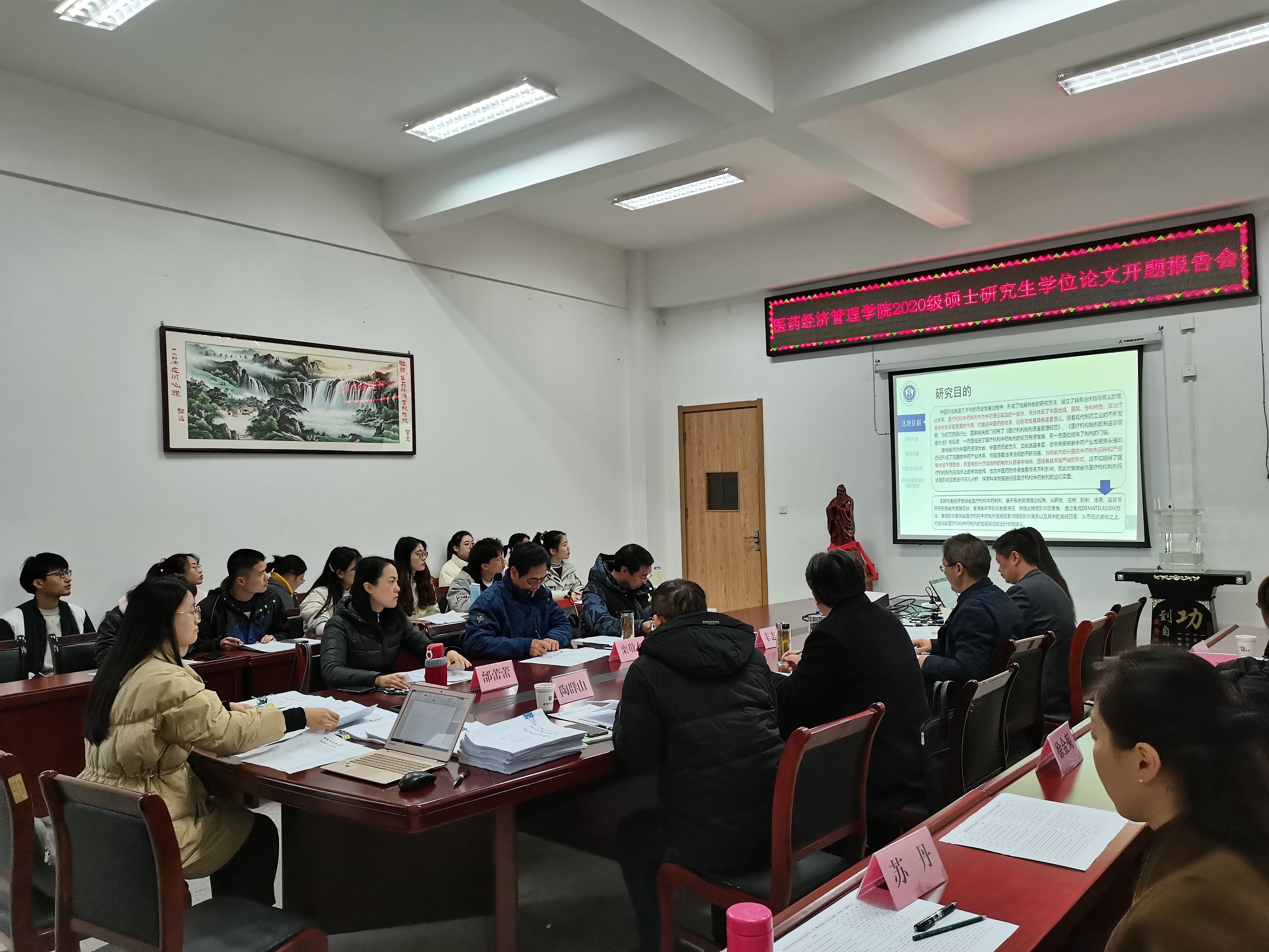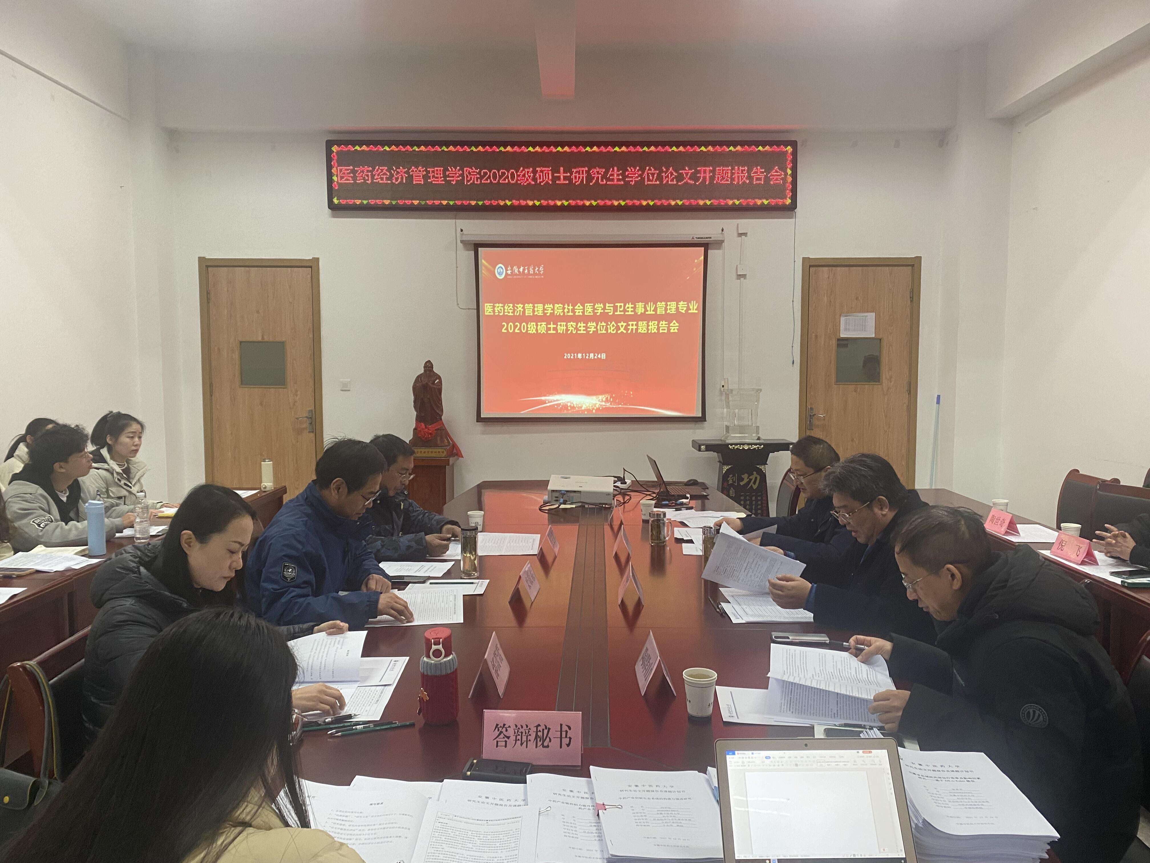 12月24日,医药经济管理学院举办社会医学与卫生事业管理专业2020级硕士研究生学位论文开题报告会。