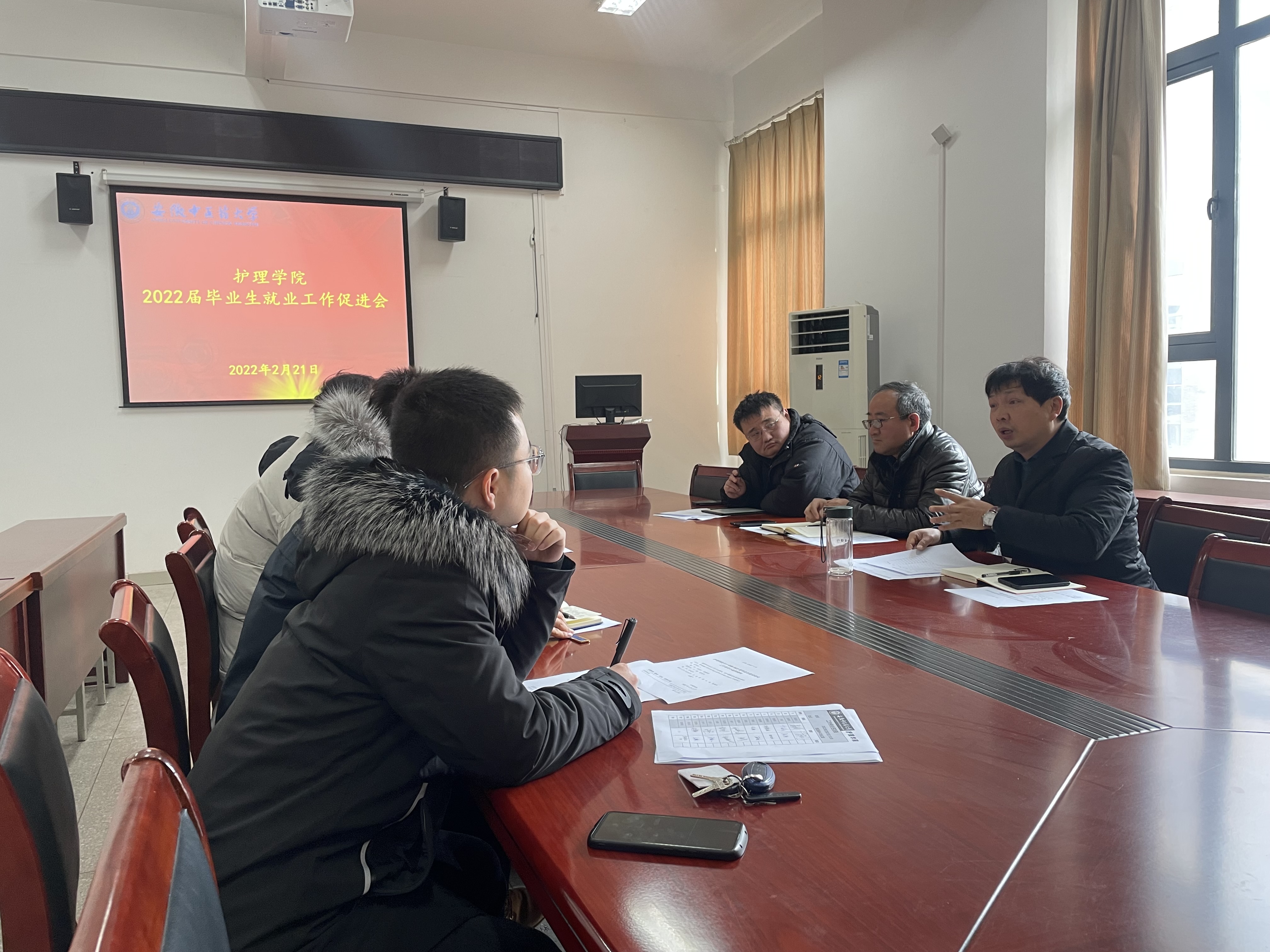 2月21日下午,护理学院召开2022届毕业生就业工作促进会,学院党委书记吴成长、院长颜贵明出席了会议,本次会议由学院党委副书记卞海主持。