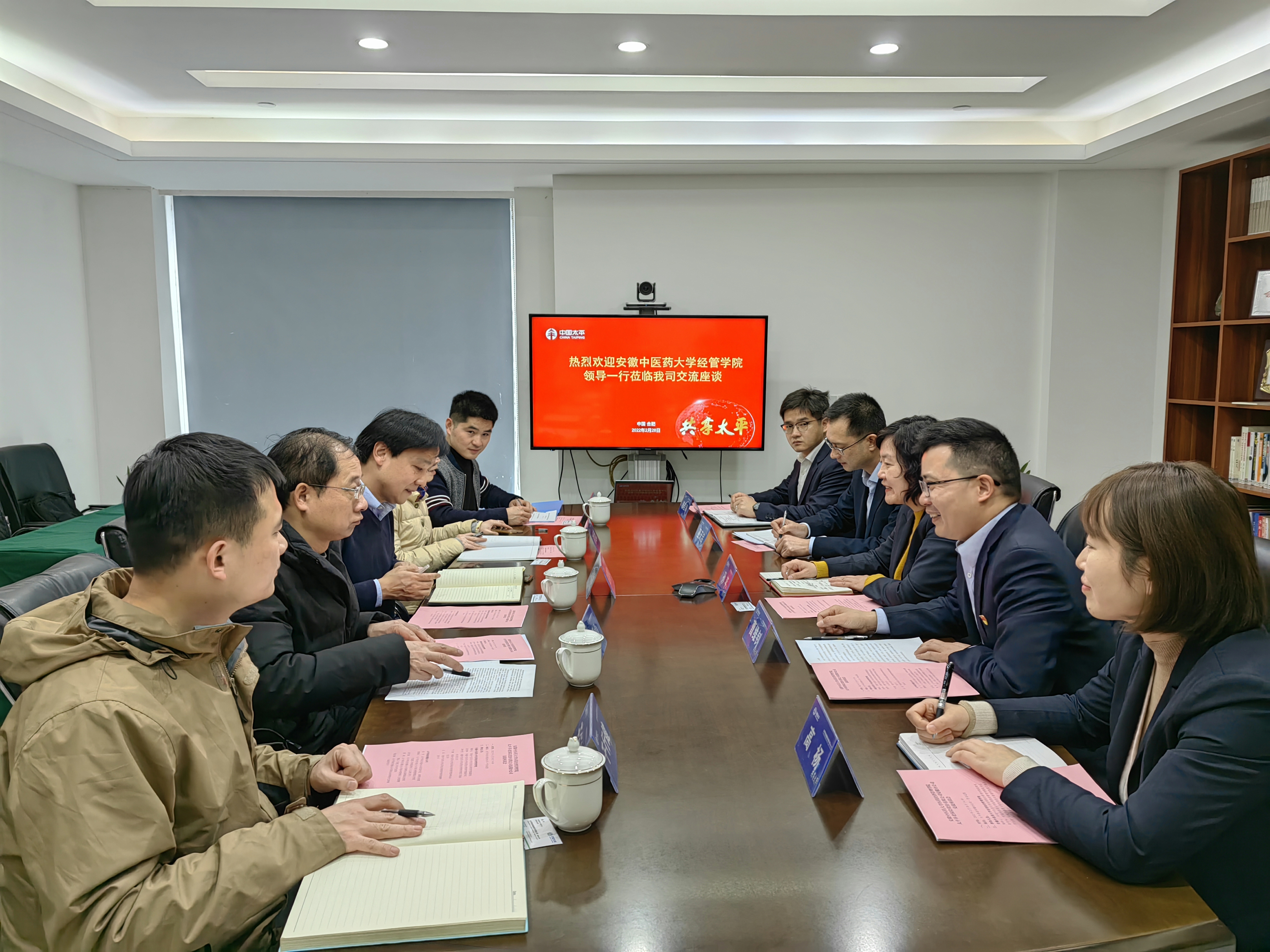 2月28日下午,医药经济管理学院领导前往中国太平养老保险股份有限公司安徽分公司洽谈实习就业基地事宜。
