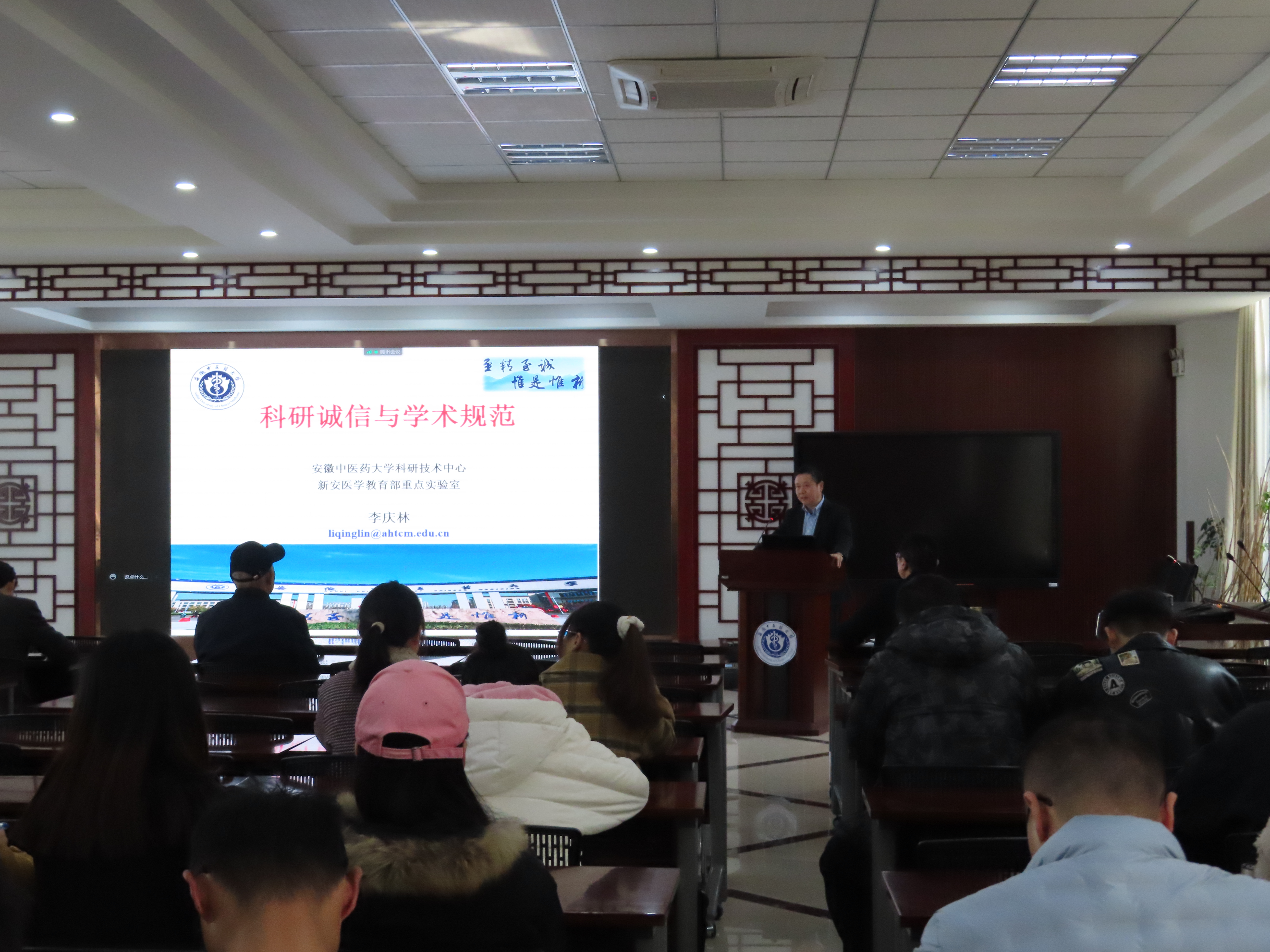 为弘扬科学精神,加强科研诚信建设,营造良好学术道德氛围,3月2日下午,药学院邀请科研实验中心主任李庆林教授作题为《科研诚信与学术规范》的主题讲座。此次会议采用线下会议与网络视频方式相结合的方式召开,药学院全体研究生及导师参会。