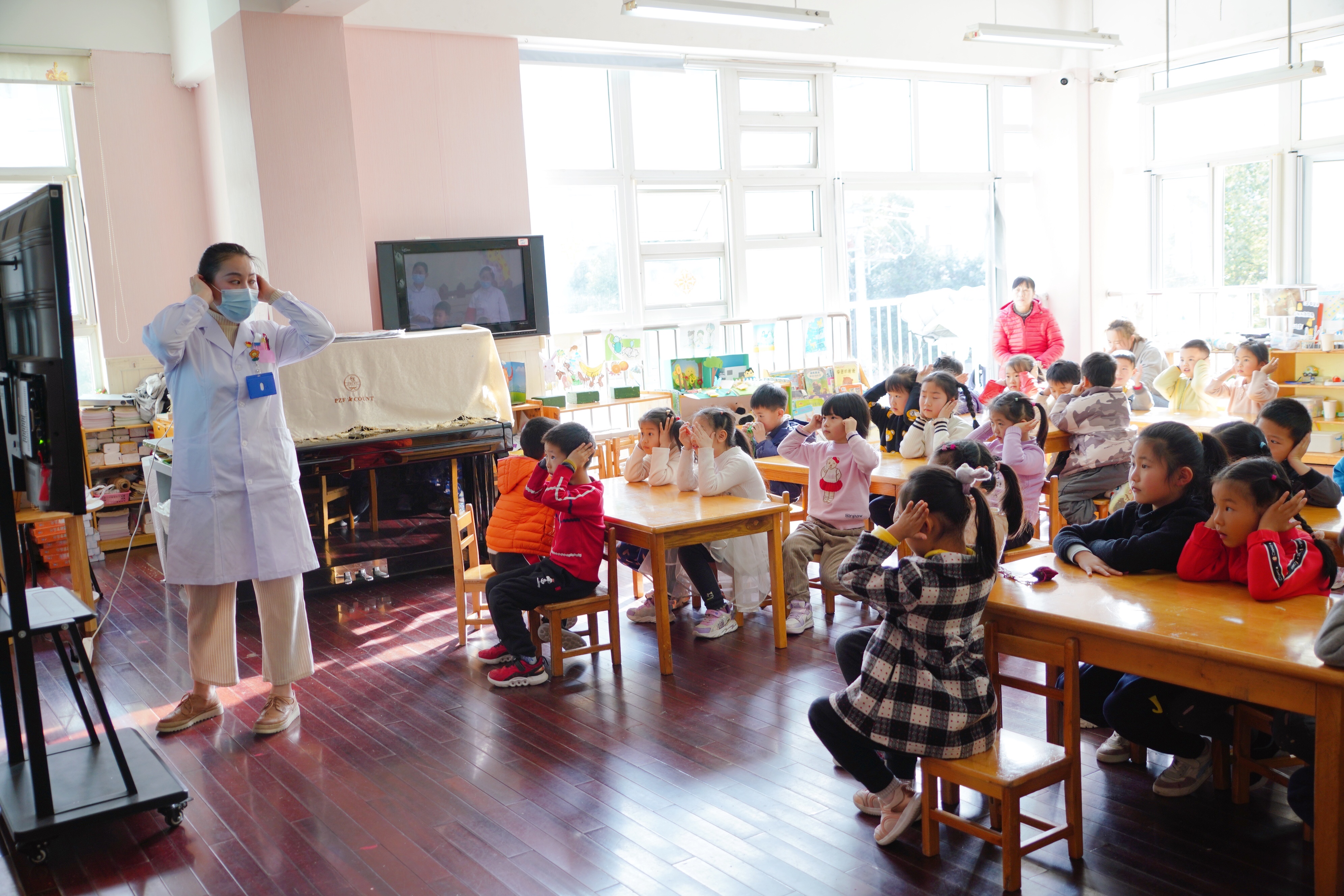“小朋友们,你们知道应该怎样保护我们的耳朵吗?”来自三附院耳鼻喉科的医生来到幼儿园,为小朋友们上了一节生动精彩的爱耳护耳科普课。课堂上,医生先通过PPT图片,生动形象地向孩子们介绍了耳朵的结构和功能、噪声对听力的影响、耐心细致的讲解了健康用耳、保护听力健康的方法和常识,并通过“传声筒”的听力游戏,让小朋友们去倾听、发现、感受耳朵的神奇之处。最后医生还带领小朋友们认真学习了“爱耳护耳操”。