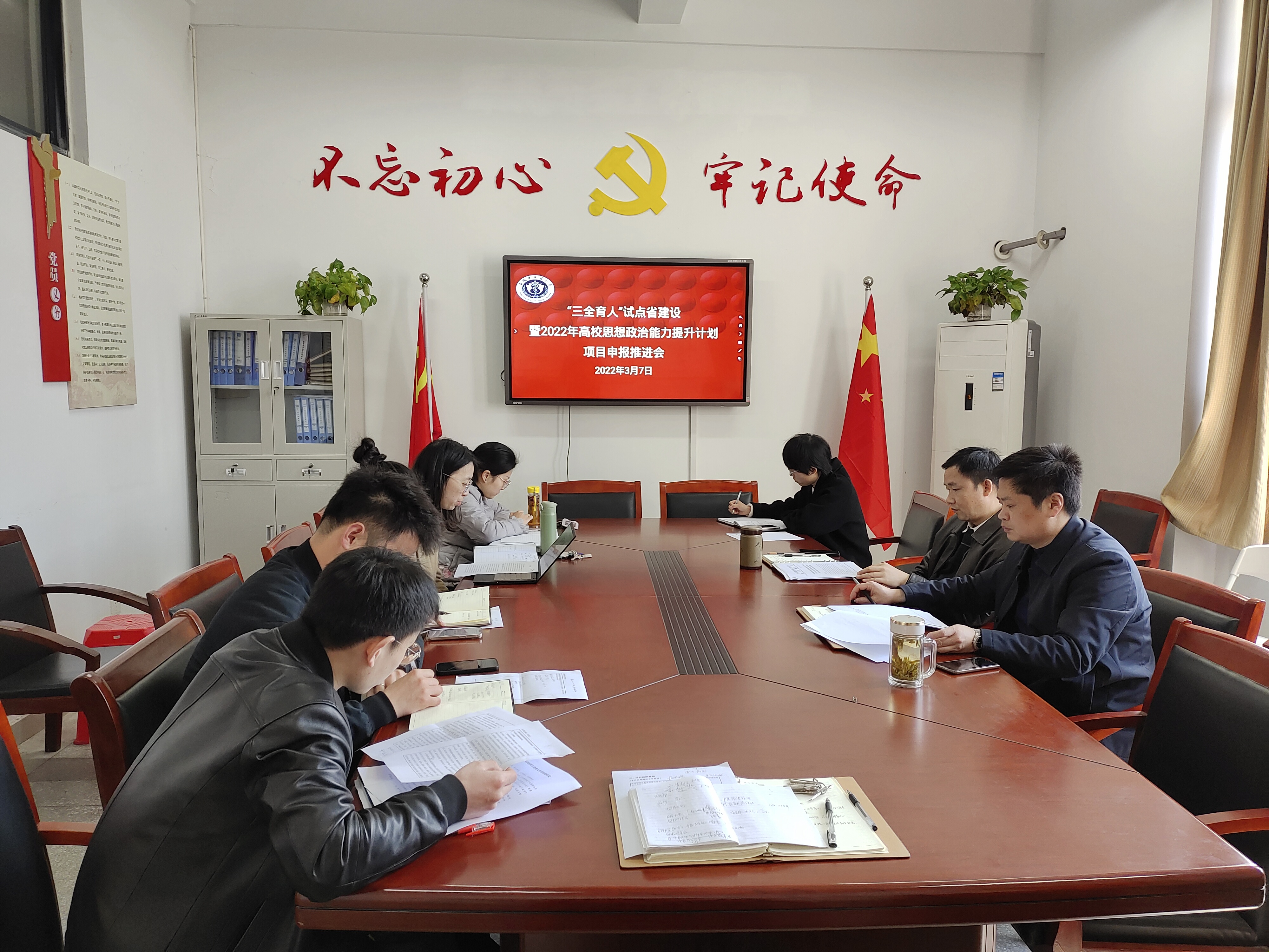 为落实立德树人根本任务,全面提升学院思想政治工作能力,3月7日上午,人文与国际教育交流学院召开2022年“三全育人”试点省建设暨高校思想政治能力提升计划项目申报推进会,会议由党总支书记姚为久主持,学院领导及学院行政、教学、科研、学工等科室相关工作人员参加会议。
