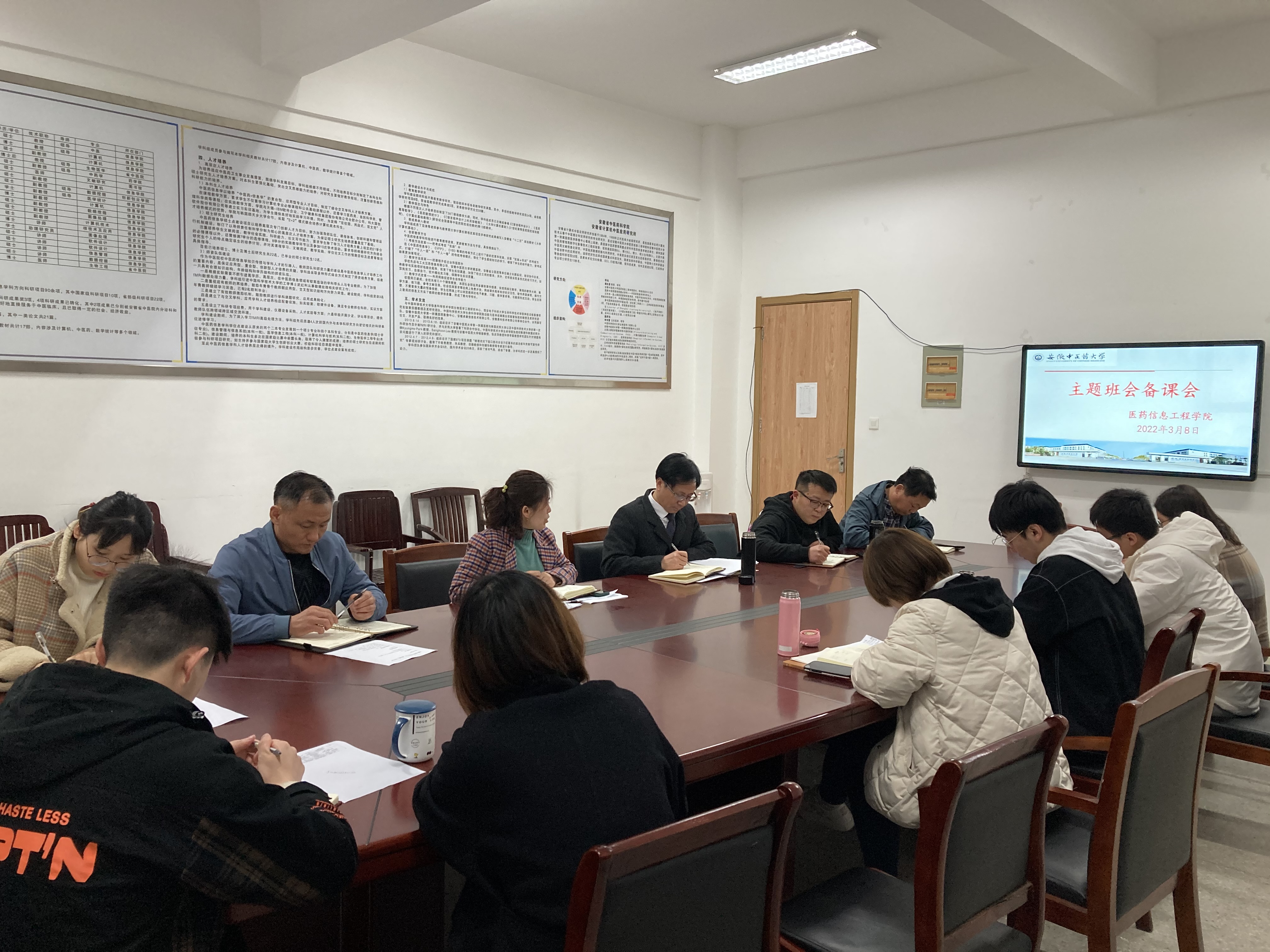 为进一步落实学校党委巡察反馈问题整改意见,实施学院加强辅导员能力建设计划,提升辅导员工作能力及主题班会质量,3月8日,医药信息工程学院召开2021-2022学年春季学期主题班会课集体备课会。学院党委书记吴成海、学生处副处长、学院党政领导等出席,全体专兼职辅导员参加研讨。