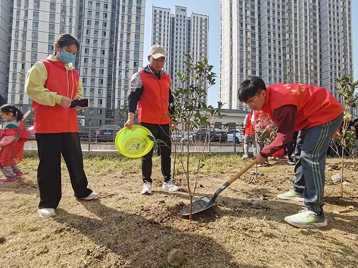 共植一片绿地,建设美丽家园,3月12日是我国第44个植树节,医药信息工程学院联合针灸推拿学院组织志愿者,在磨店社区光明之家开展“义务植树,美化家园”活动。