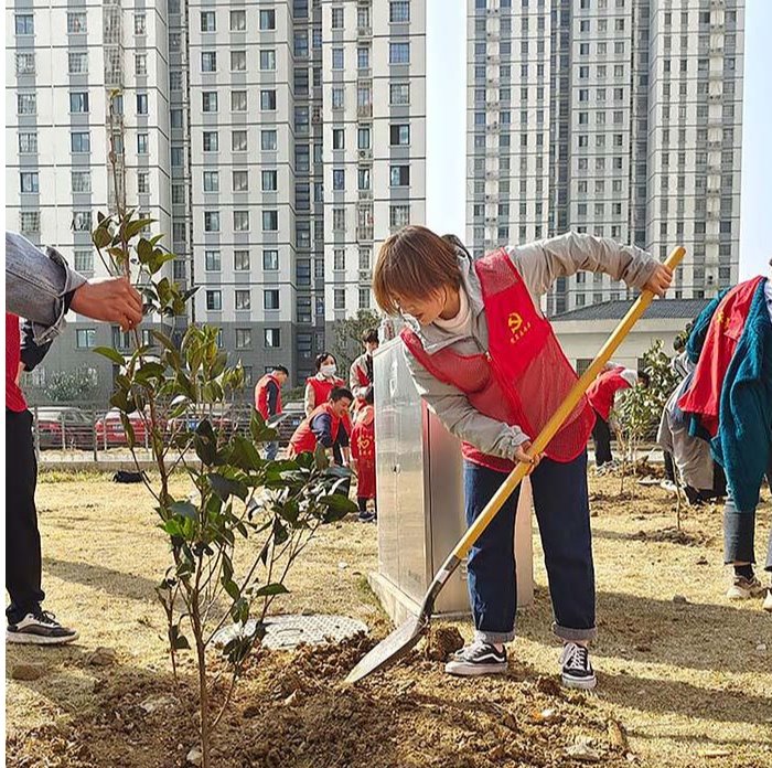 志愿者们携带工具来到指定地点。随后,大家自由分组,互相配合,有的挥锹铲土、有的扶树填土、有的培土浇水,忙得不亦乐乎。经过协作共助,志愿者们完成了树苗的栽种,相信这些承载着爱心与希望的树苗必将茁壮成长,焕发一片生机。