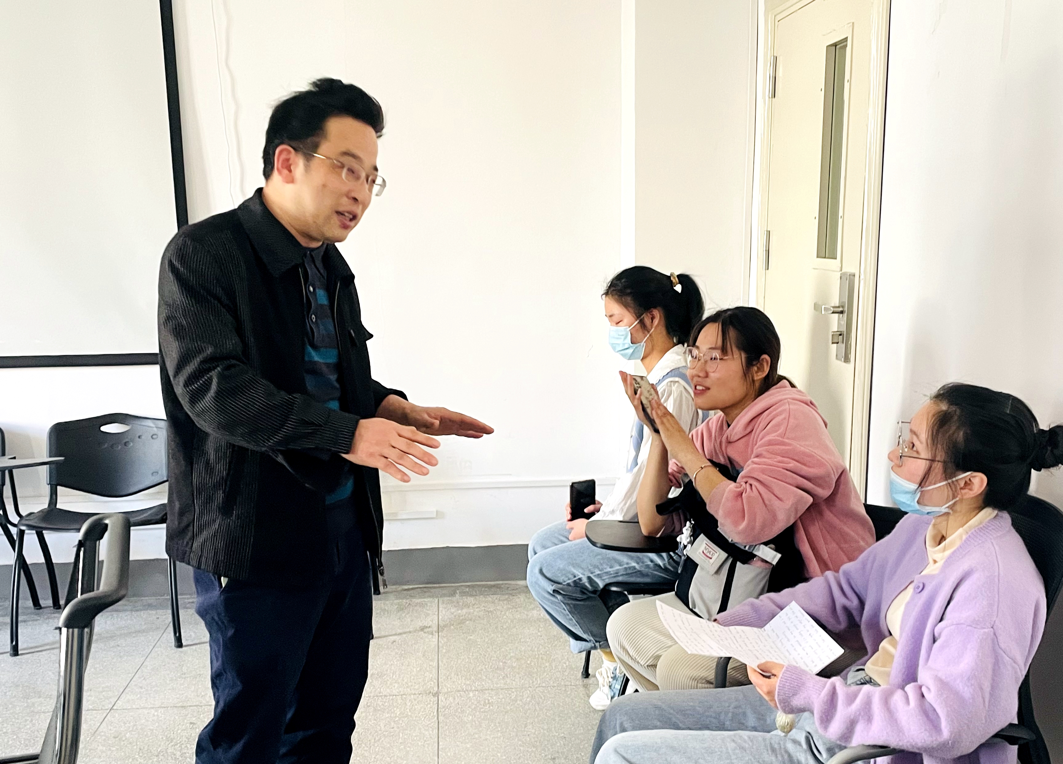 活动中,学生科负责人和辅导员老师在候考教室就学生提出的考研及工作相关问题进行答疑解惑,缓解学生心理压力,积极应对各类面试。