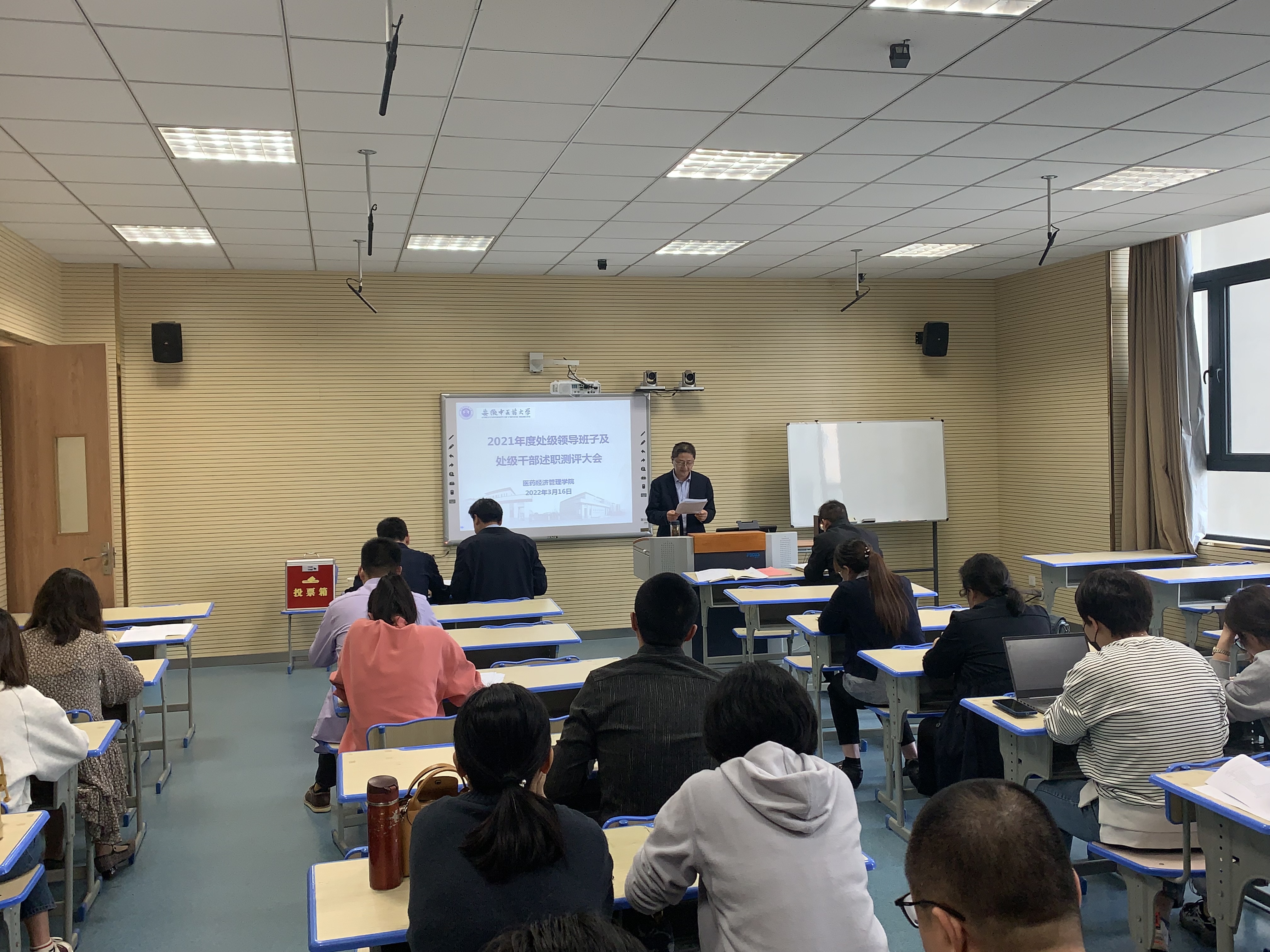3月16日下午,医药经济管理学院召开2021年度处级领导班子和处级干部述职测评大会,学院全体教师参加,组织部老师列席。会议由院长丰志培主持。
