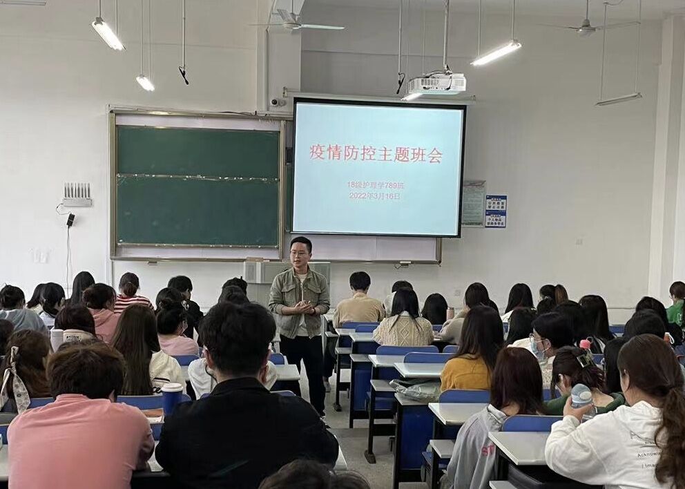 为进一步做好学院疫情防控工作,加强在校学生的教育管理与服务,3月17日,护理学院在全院范围内开展了疫情防控主题班会,针对在校外实习的研究生和本科生班级,辅导员开展了线上班会,确保疫情防控部署多维度、全覆盖、无死角。