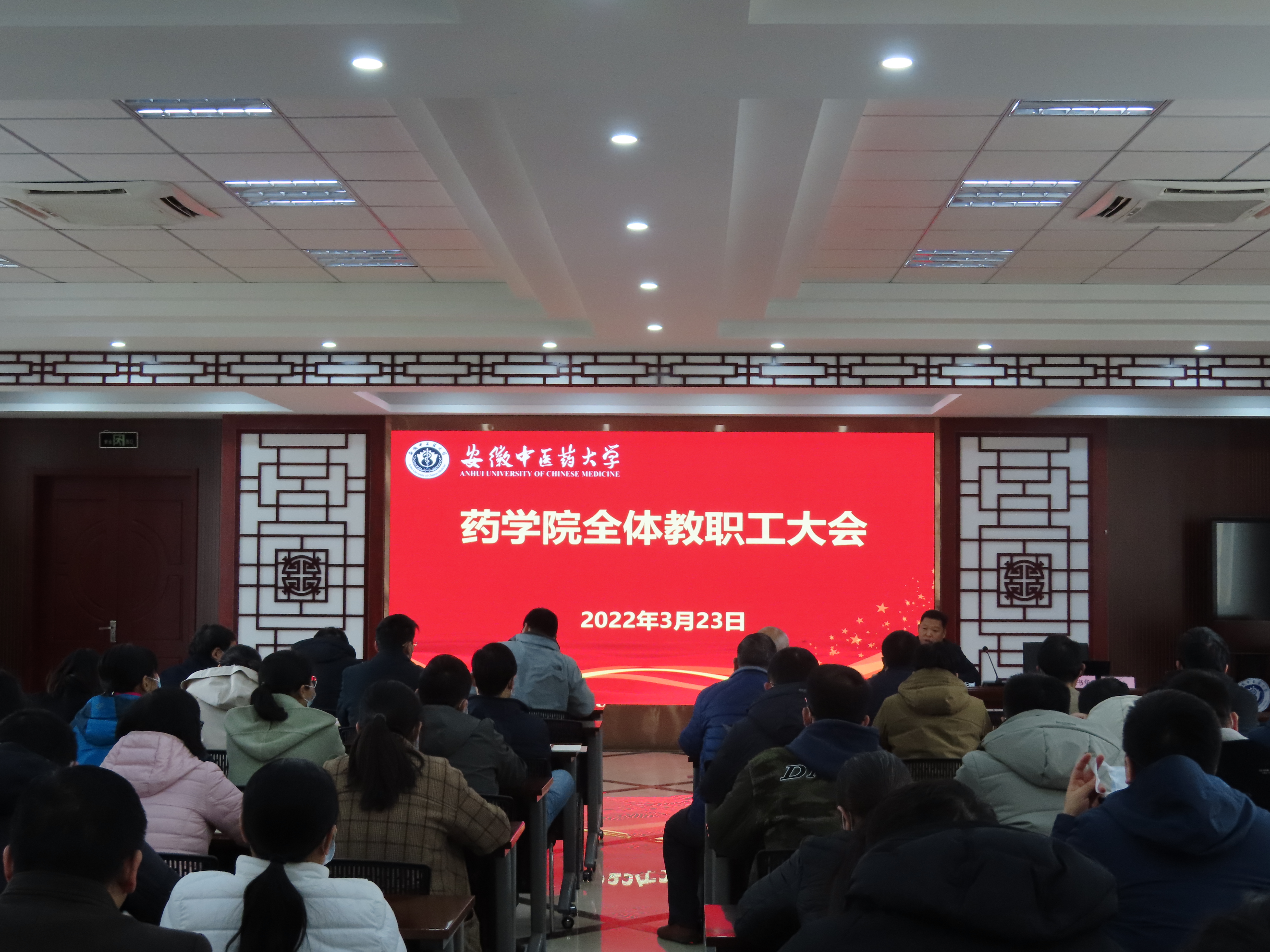 为应对目前严峻复杂的疫情防控形势,加强学院疫情防控力度,确保师生的身心健康与生命安全,3月23日下午,药学院召开全体教职工大会专题部署疫情防控工作,全体教职工参加本次会议,会议由药学院党委书记胡卿主持。