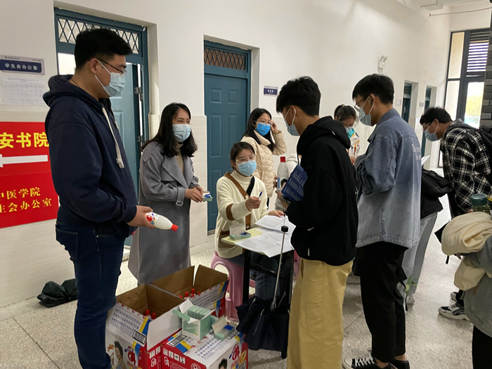 为保障疫情防控工作有效开展,3月25日,中医学院向全体学生发放体温计、84消毒液等防疫物品,进一步落实《关于带着温暖做好学校春季开学疫情防控工作的通知》要求。