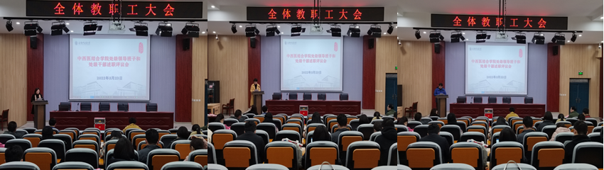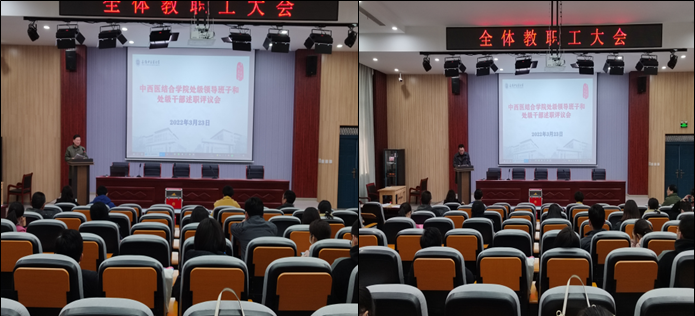 3月23日下午,中西医结合学院召开全院教职工大会暨2021年度处级领导班子和处级干部述职测评大会,学院全体教师参加,会议由学院党委书记尹必武主持。