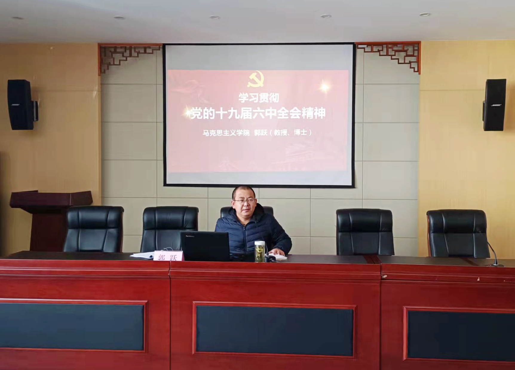 会上,郭跃教授从深刻认识总结党的百年奋斗重大成就和历史经验的重大意义 ;深刻认识党的百年奋斗的初心使命和重大成就;深刻认识中国特色社会主义新时代的历史性成就和历史性变革 ;深刻认识党的百年奋斗的历史意义和历史经验;深刻认识以史为鉴、开创未来的重要要求 ;从党的百年奋斗历程中汲取智慧和力量六个方面,本着员工听得懂、弄得通、能领会、可落实的原则,深入浅出地宣讲了党的十九届六中全会精神。