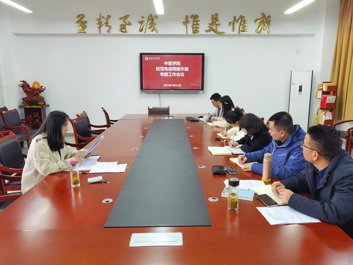 为进一步加强校园电信诈骗防范工作,提高学生风险防范意识,保护学生生命财产安全,3月31日,中医学院召开防范电信网络诈骗专题工作会议,全体辅导员参加。