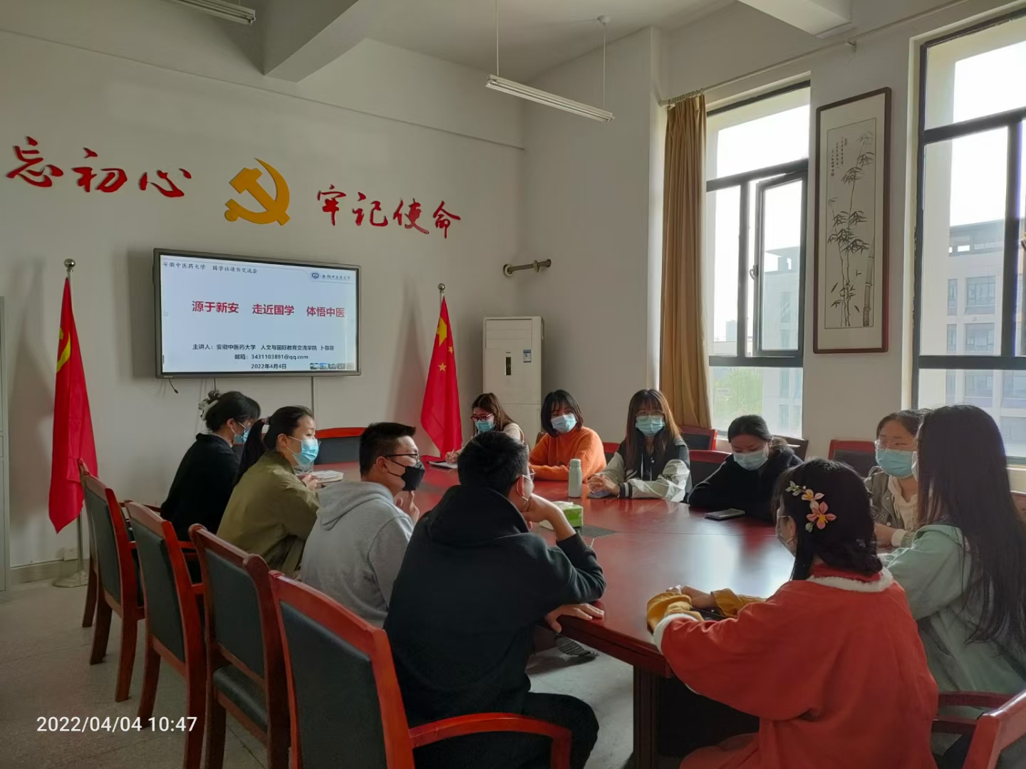 天朗气清,惠风和畅,正值读书好时节。4月4日上午,我校大学生国学社举办师生读书交流会。本次交流会由大学生国学社指导教师人文与国际教育交流学院卜菲菲主讲,主要围绕中医学、新安医学和国学三个方面进行展开。大学生国学社骨干成员参加本次交流会。